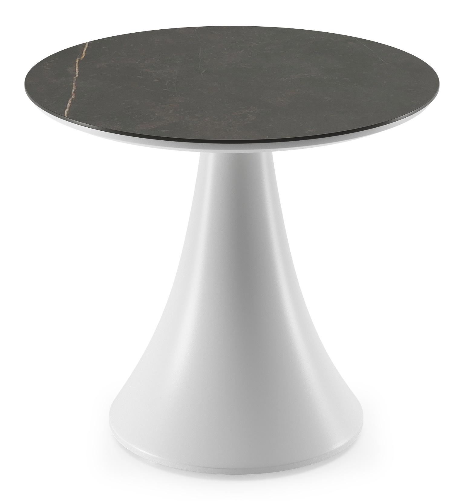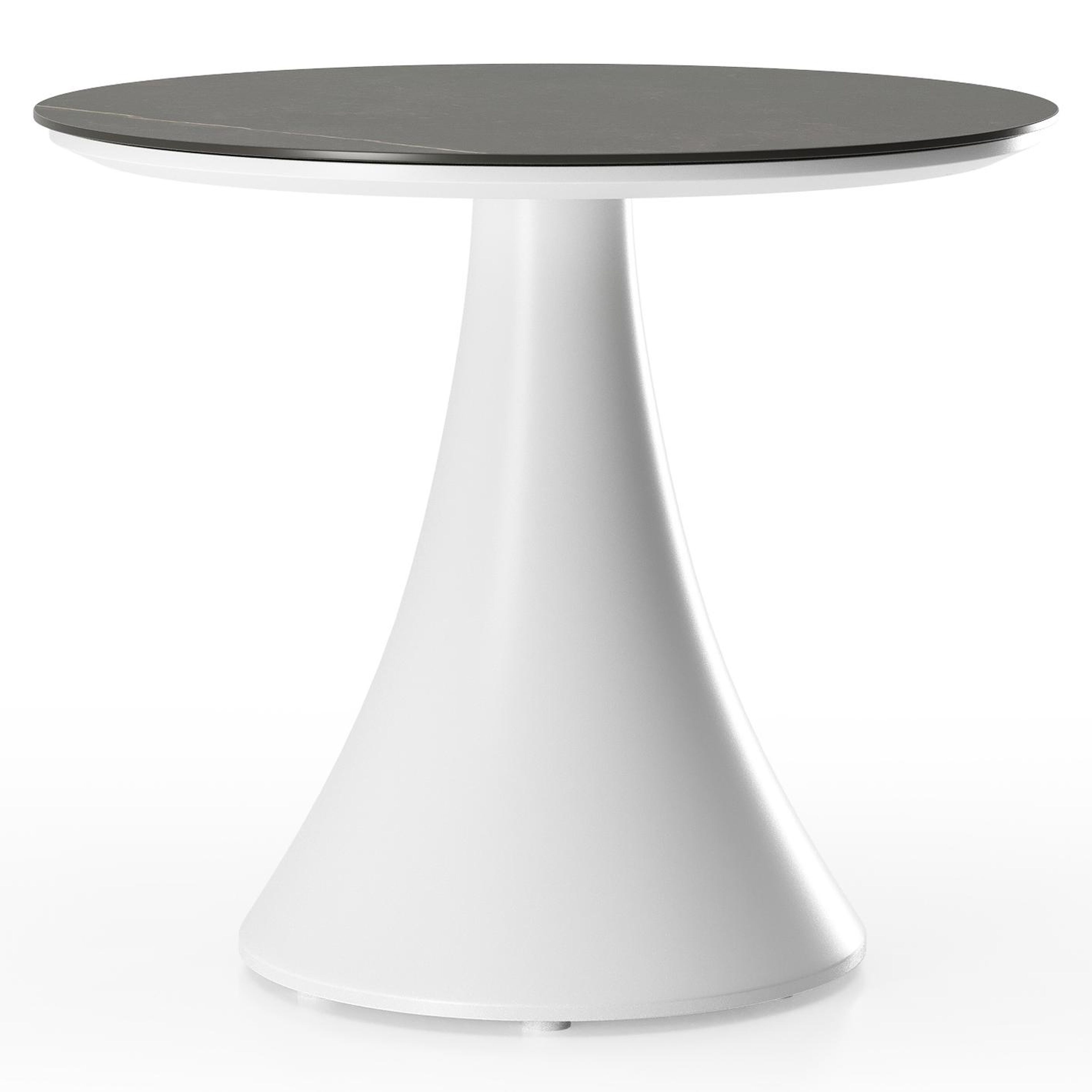 Fano low dining low dining loungetafel rond in wit aluminium en volkeramiek Calatorao - Dia. 65 x H 55 cm | Exterioo tuinmeubelen