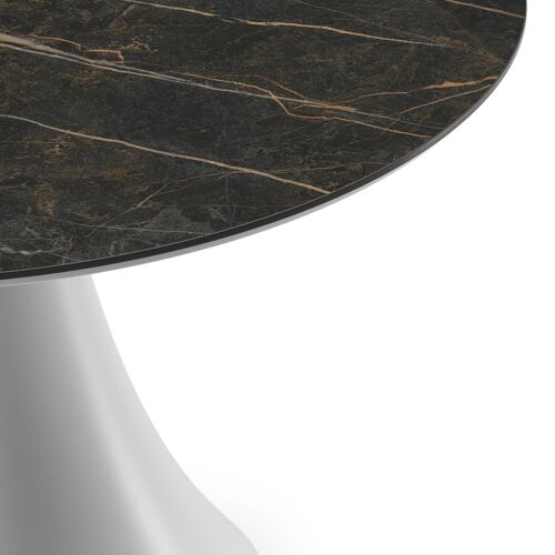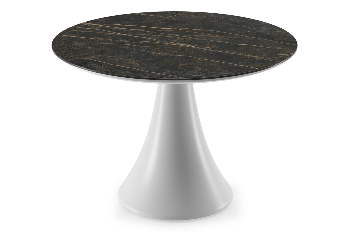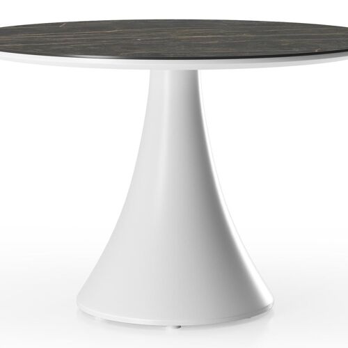 Fano low dining loungetafel rond in wit aluminium en volkeramiek Black Obsession - Dia. 85 x H 55 cm | Exterioo