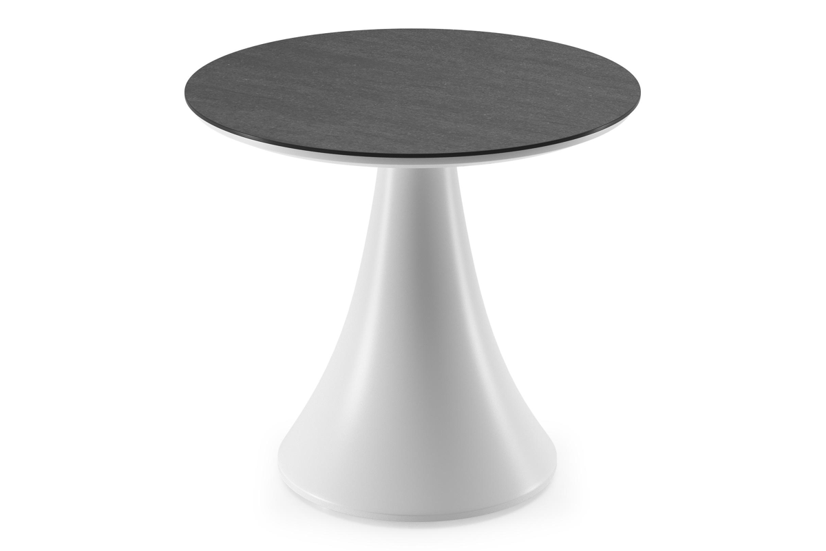 Fano low dining low dining loungetafel rond in wit aluminium en volkeramiek Basalt Black - Dia. 65 x H 55 cm | Exterioo