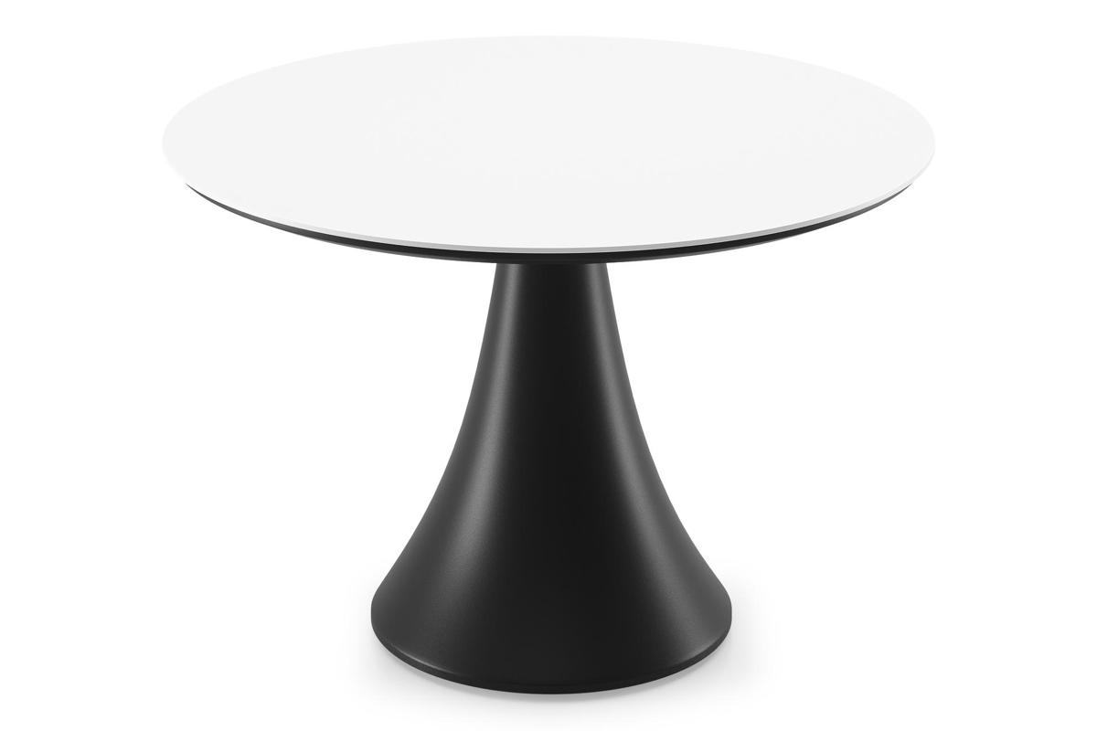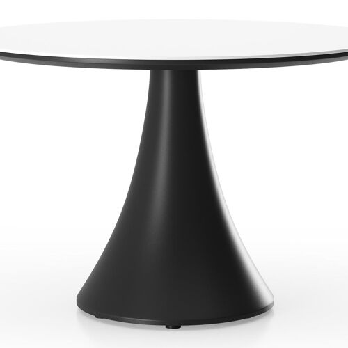 Fano low dining low dining loungetafel rond in zwart aluminium en volkeramiek Arctic White - Dia. 85 x H 55 cm | Exterioo