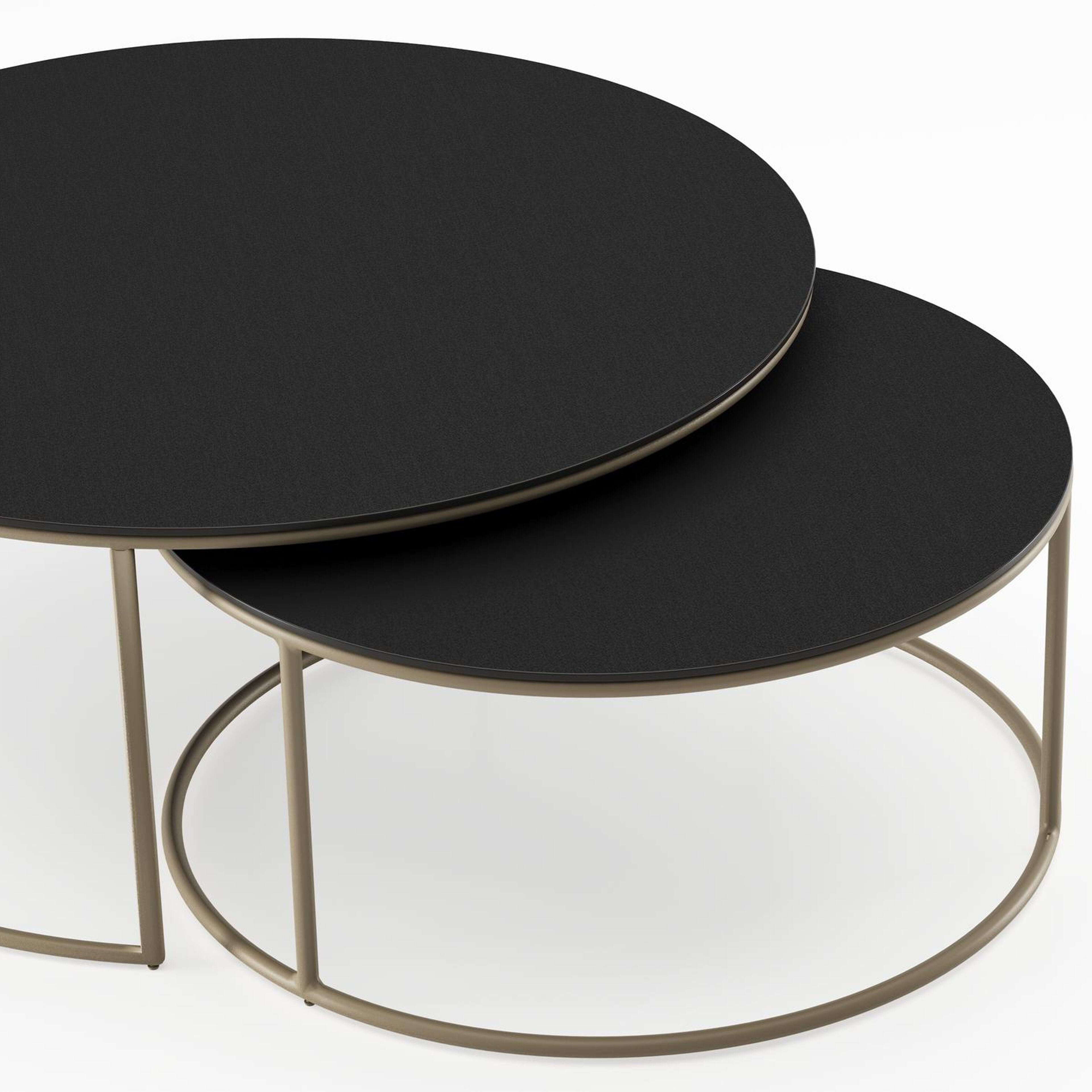 Fano set van 2 loungetafels rond in beige aluminium en volkeramiek Nero Black - Dia. 85 x H 35 cm | Exterioo tuinmeubelen