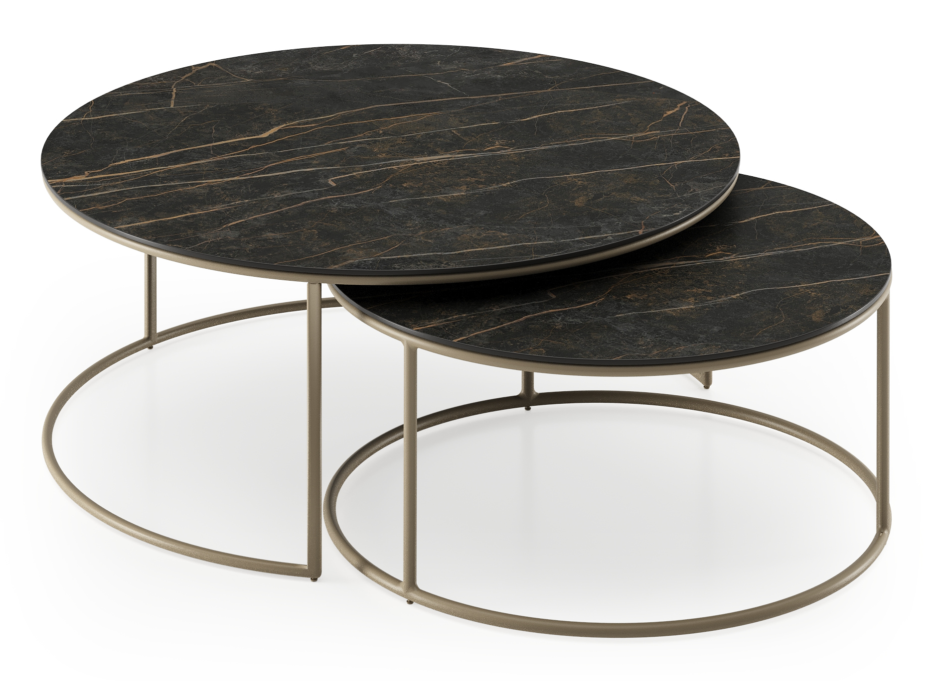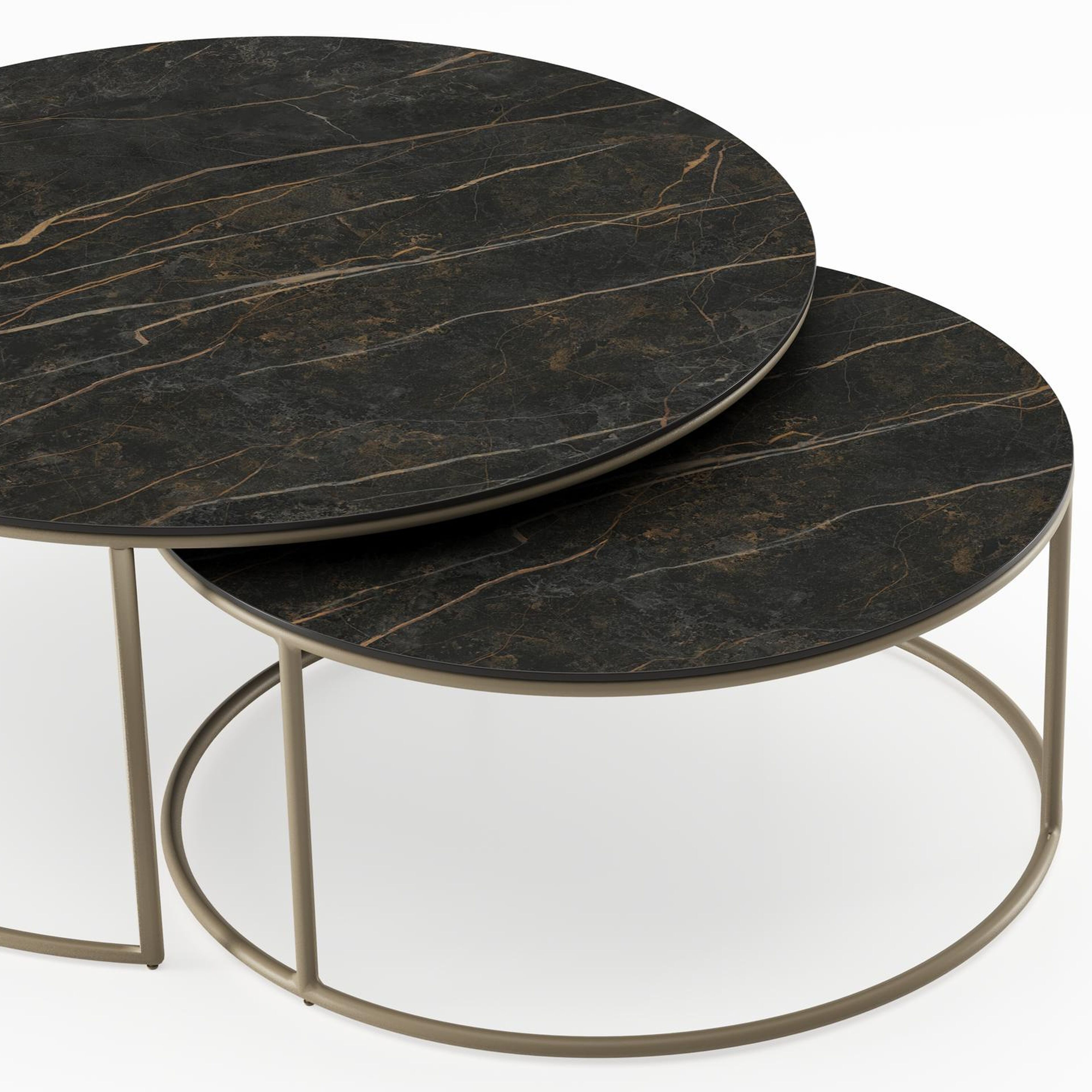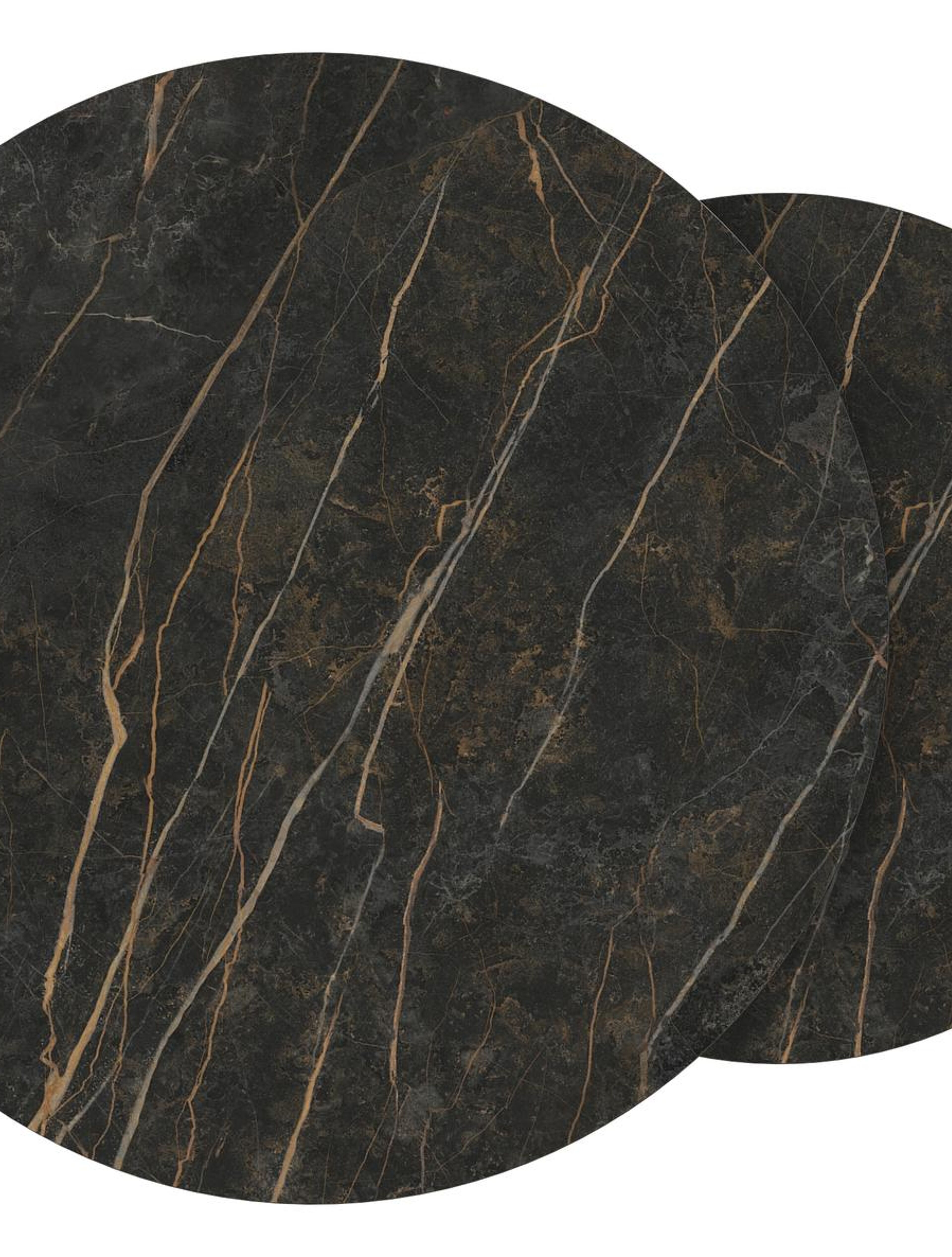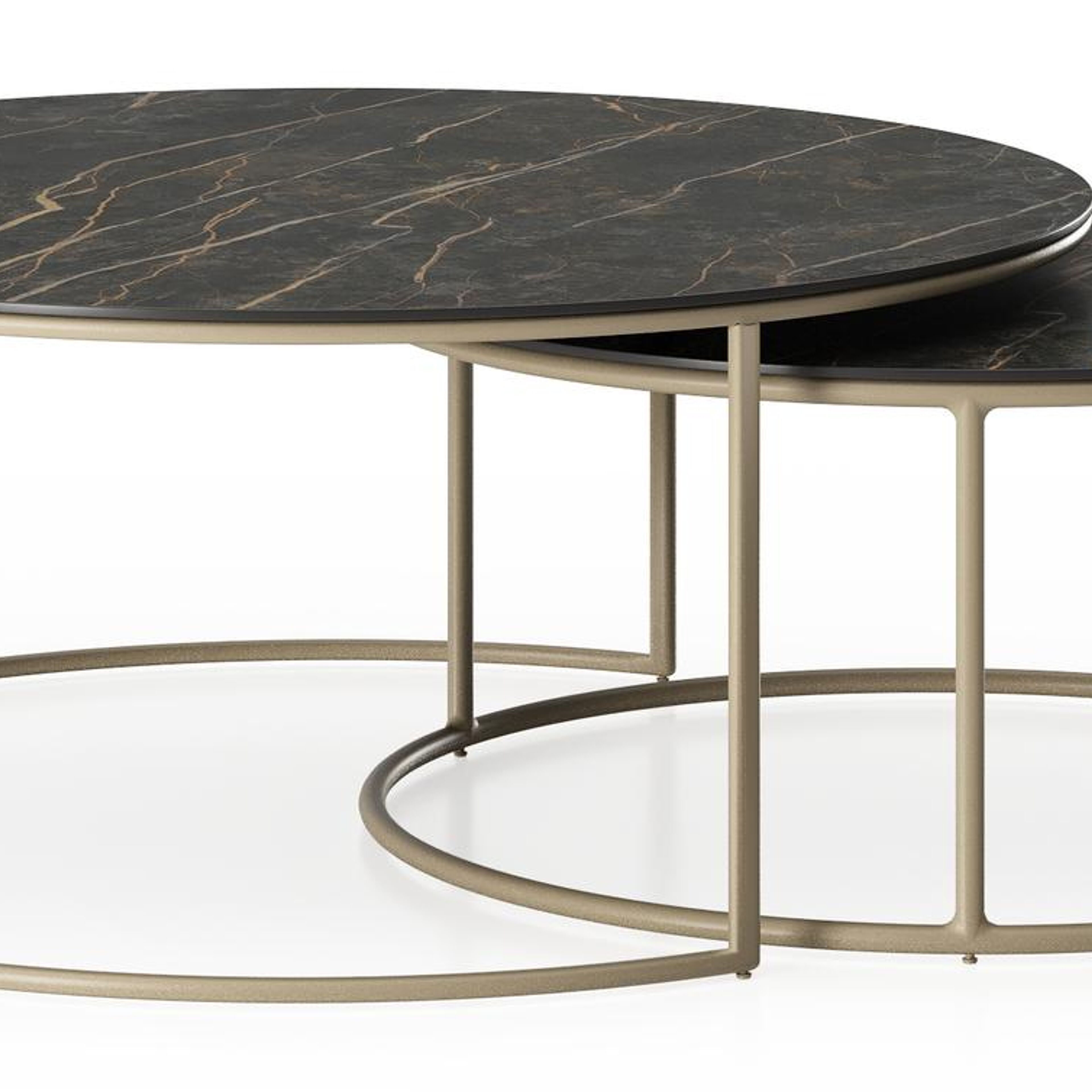 Fano set van 2 loungetafels rond in beige aluminium en volkeramiek Black Obsession - Dia. 85 x H 35 cm | Exterioo tuinmeubelen