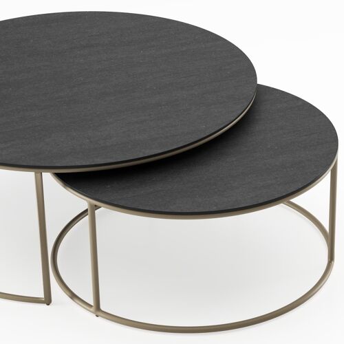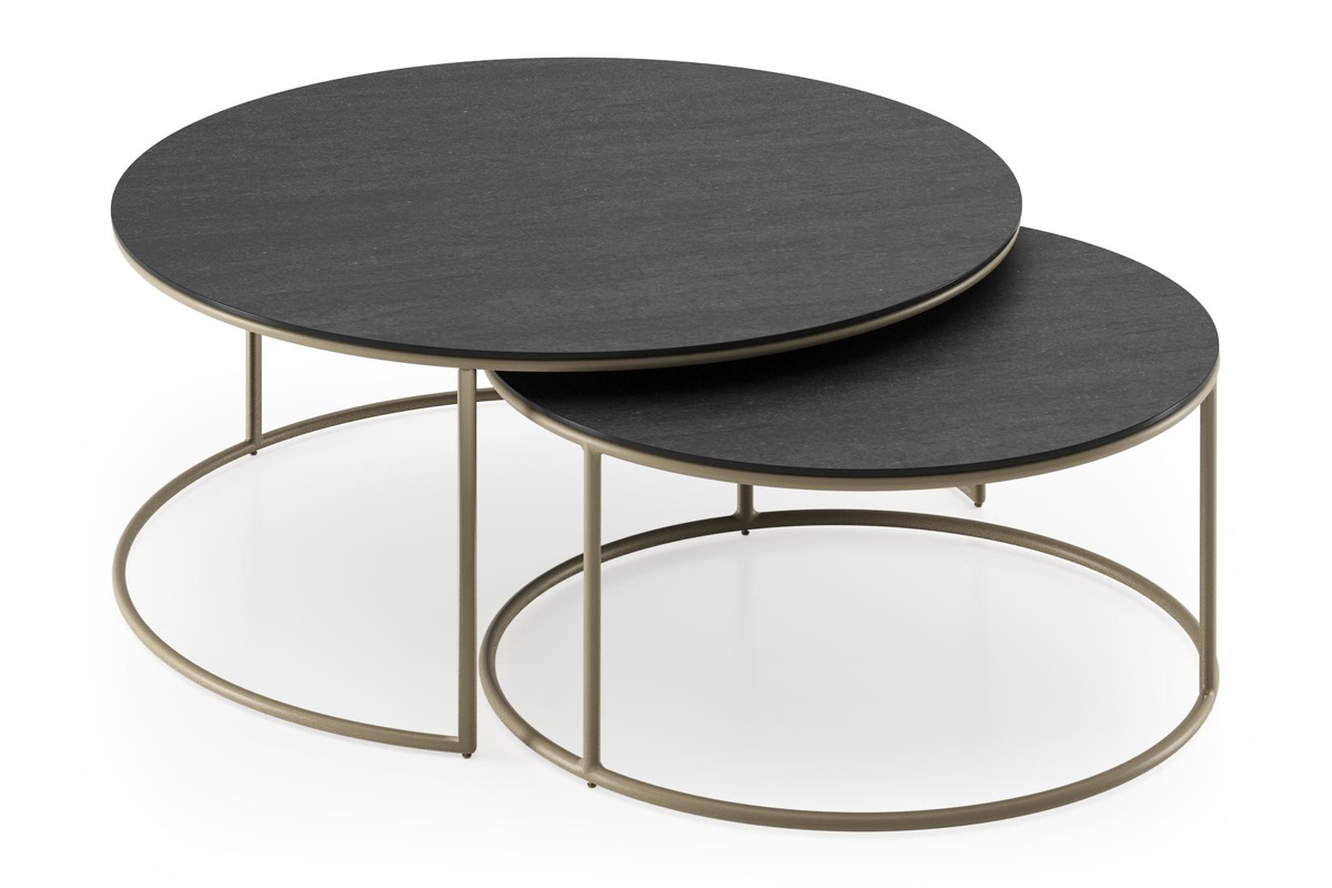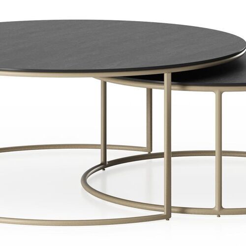 Fano set van 2 loungetafels rond in beige aluminium en volkeramiek Basalt Black - Dia. 85 x H 35 cm | Exterioo