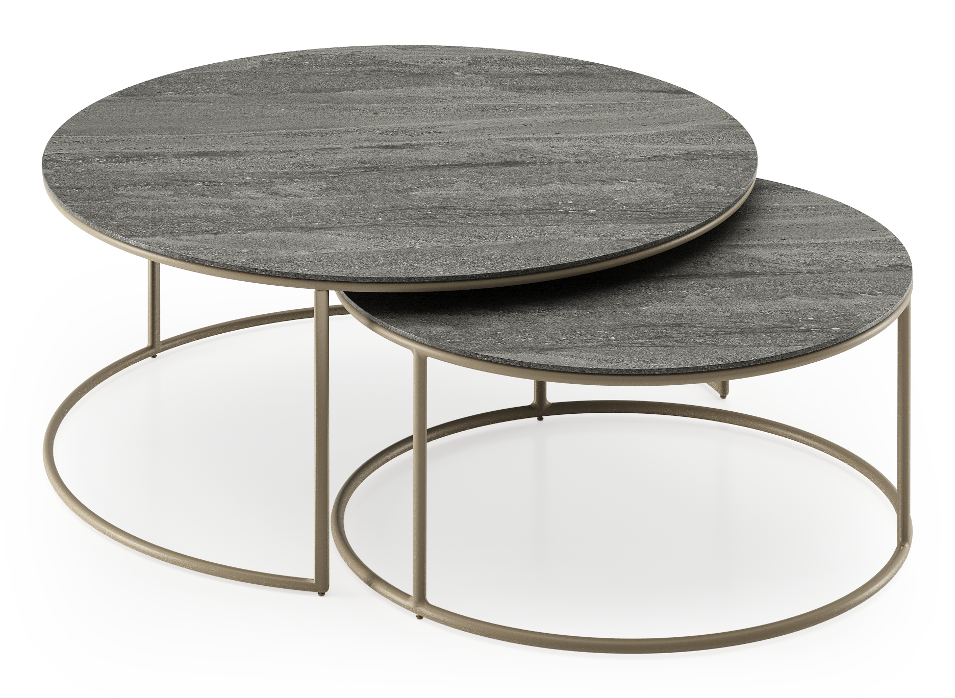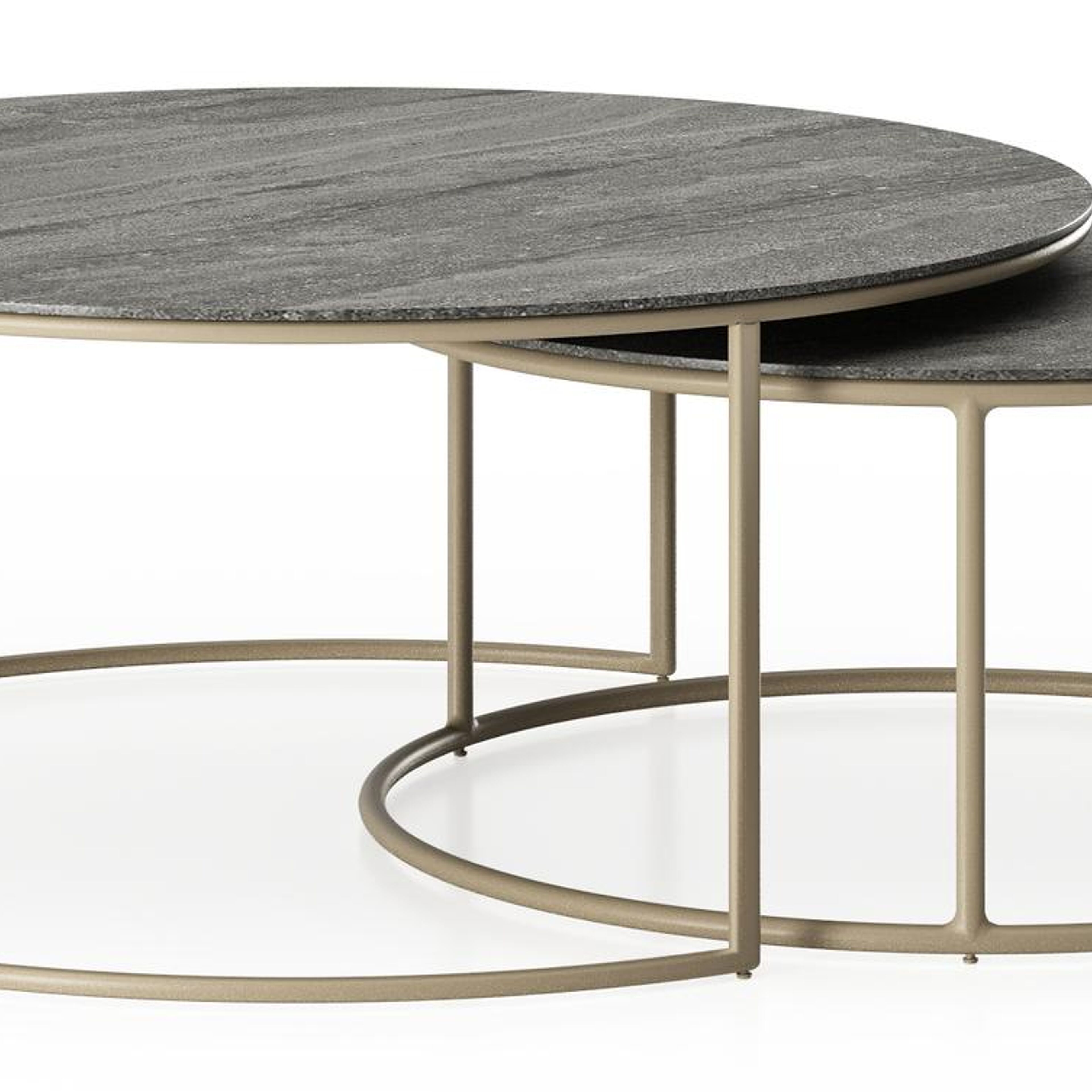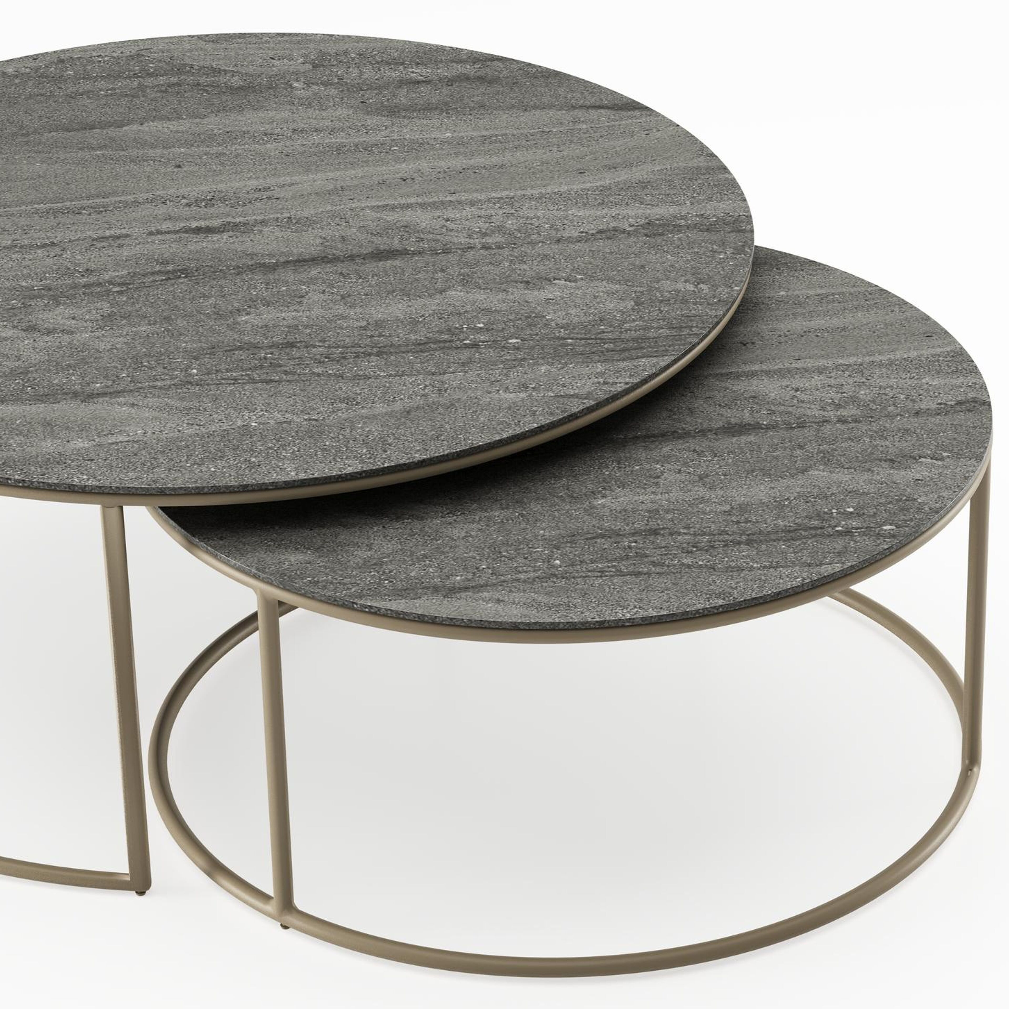 Fano set van 2 loungetafels rond in beige aluminium en volkeramiek Aspen Grey - Dia. 85 x H 35 cm | Exterioo tuinmeubelen