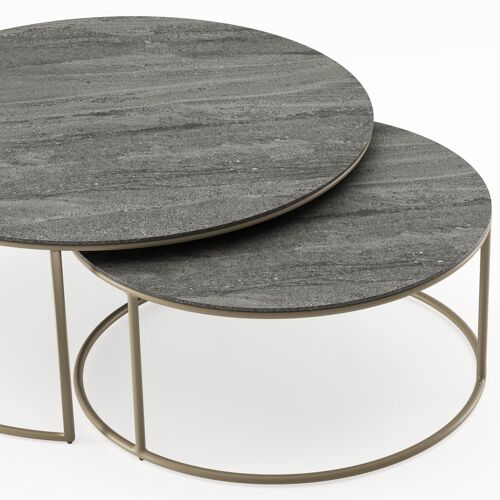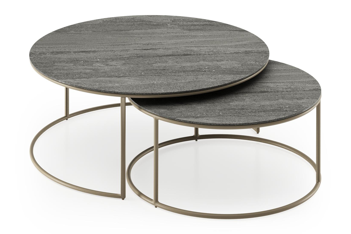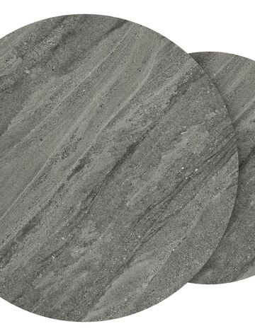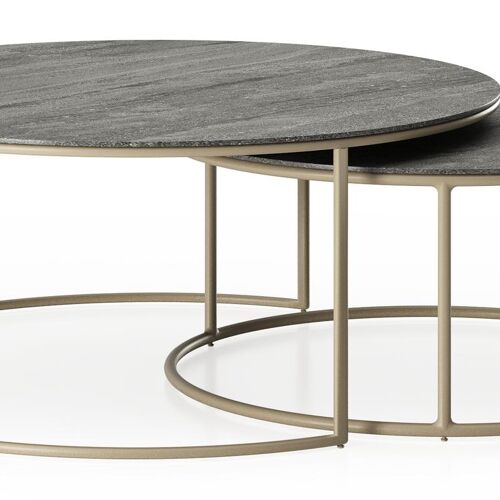 Fano set van 2 loungetafels rond in beige aluminium en volkeramiek Aspen Grey - Dia. 85 x H 35 cm | Exterioo