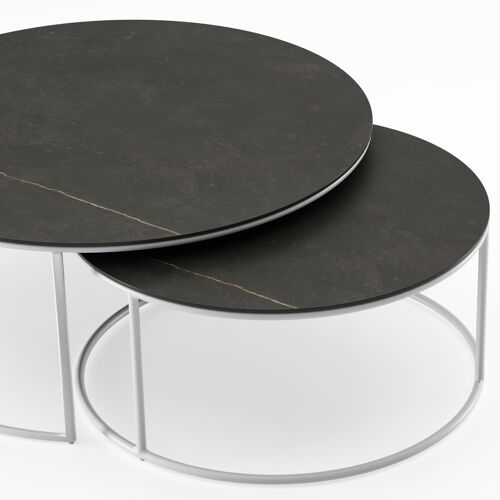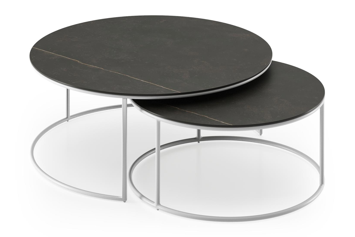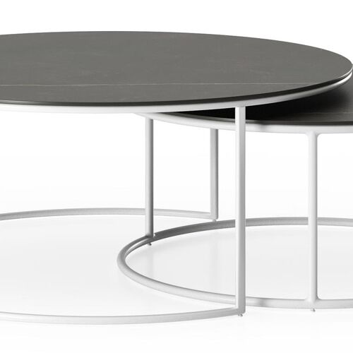 Fano set van 2 loungetafels rond in wit aluminium en volkeramiek Calatorao - Dia. 85/65 x H 35/30 cm | Exterioo
