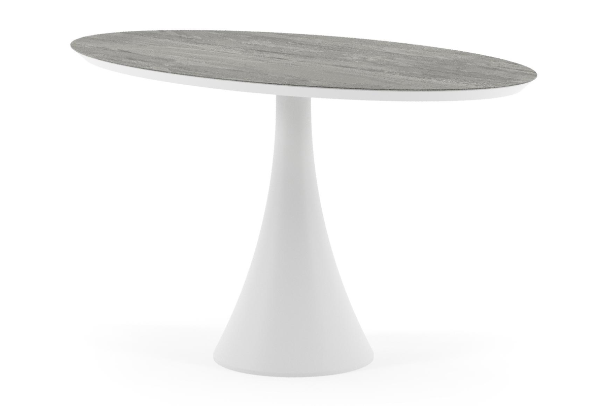 Fano tuintafel ovaal in wit aluminium en volkeramiek Aspen Grey - L 140 x B 80 x H 74.5 cm | Exterioo