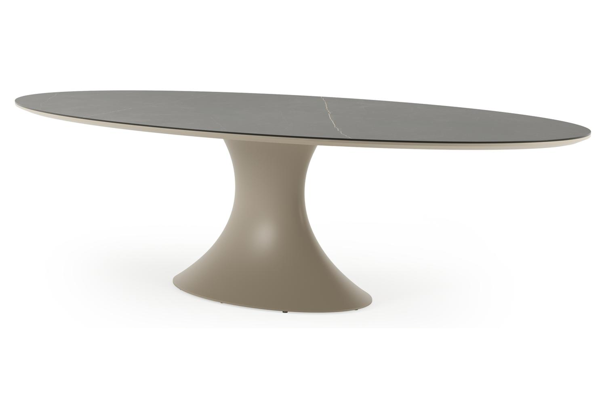 Fano tuintafel ovaal in beige aluminium en volkeramiek Calatorao - L 290 x B 148 x H 75 cm | Exterioo