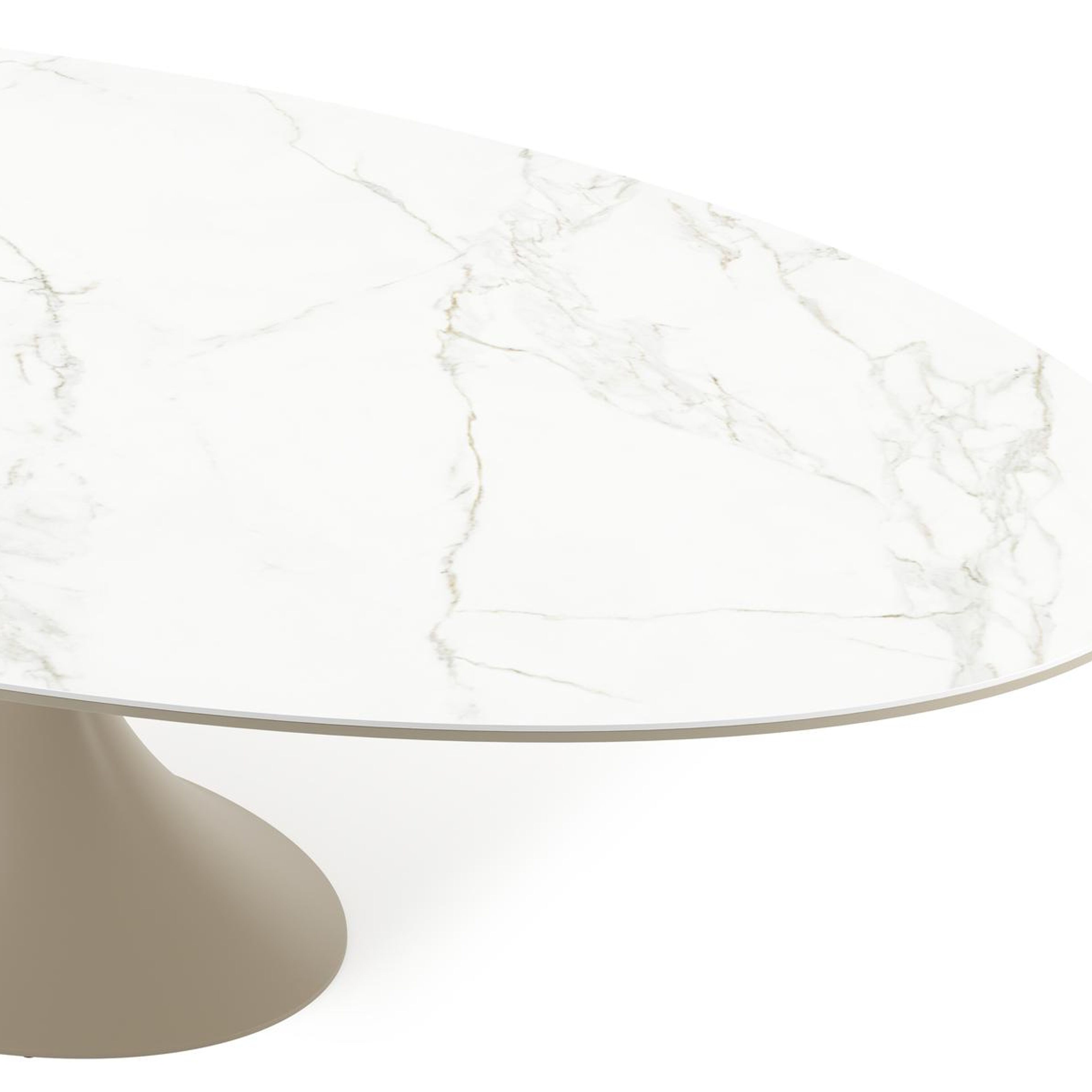 Fano tuintafel ovaal in beige aluminium en volkeramiek Calacatta - L 290 x B 148 x H 75 cm | Exterioo tuinmeubelen