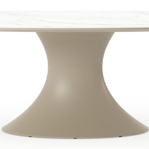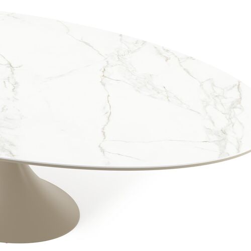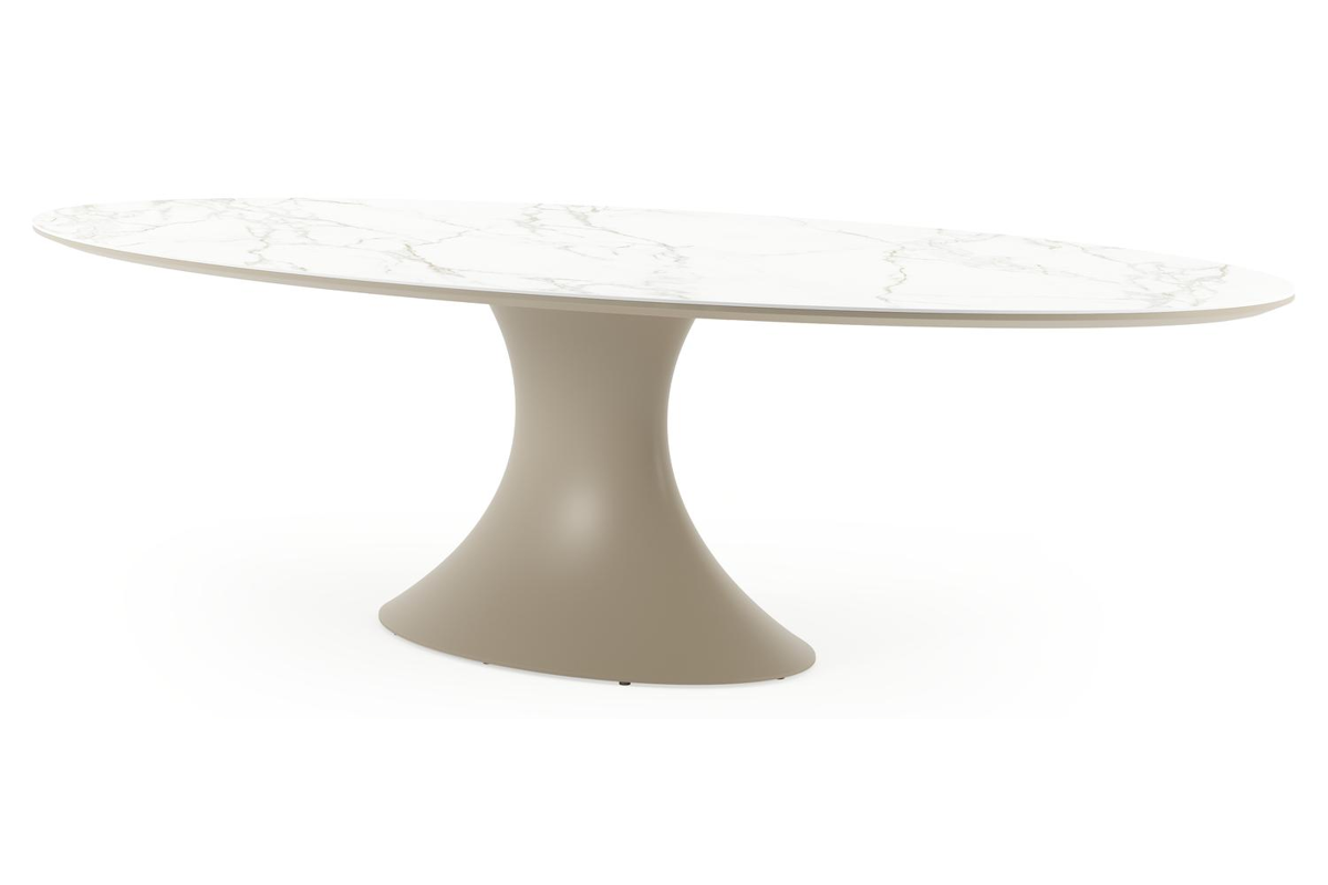 Fano tuintafel ovaal in beige aluminium en volkeramiek Calacatta - L 290 x B 148 x H 75 cm | Exterioo