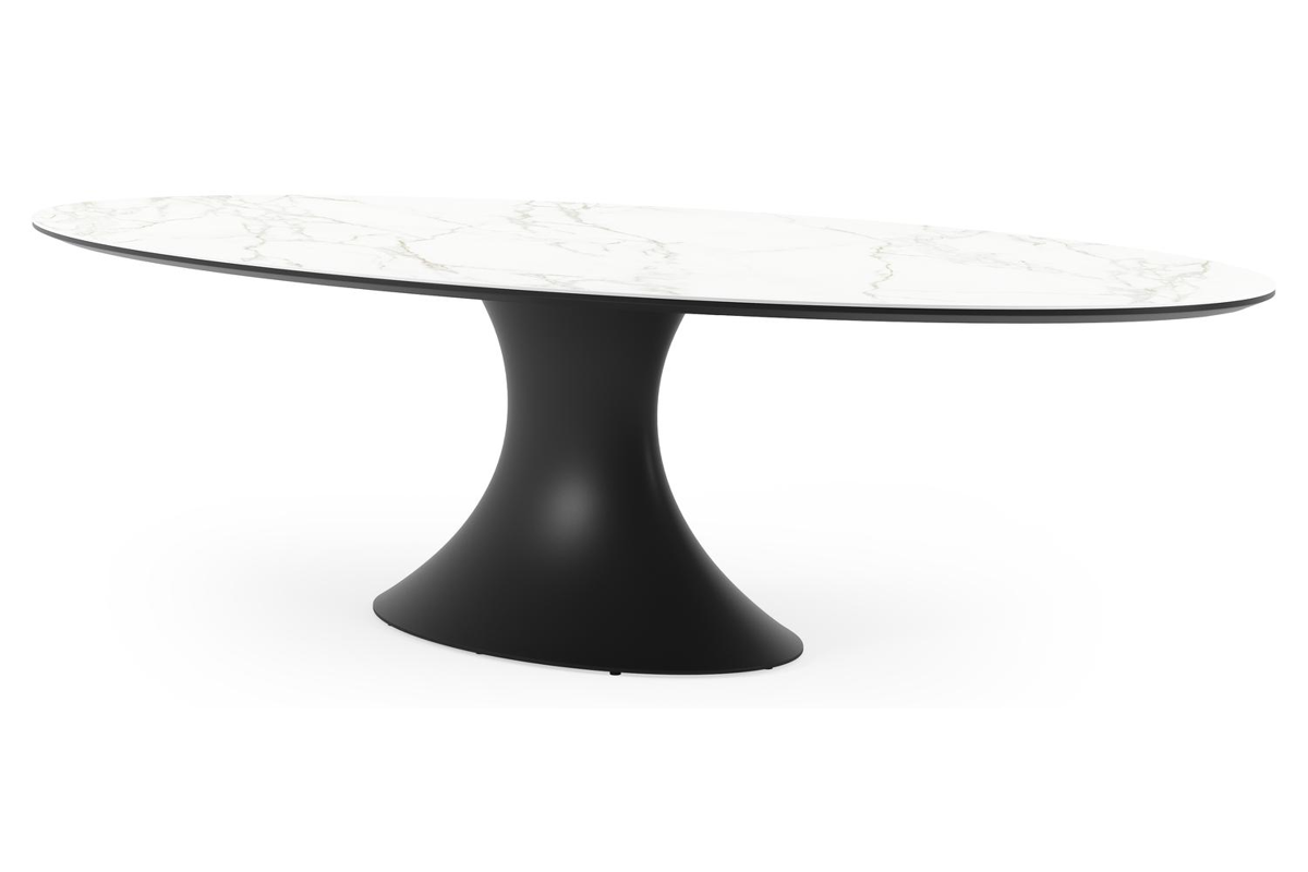 Fano tuintafel ovaal in zwart aluminium en volkeramiek Calacatta - L 290 x B 148 x H 75 cm | Exterioo