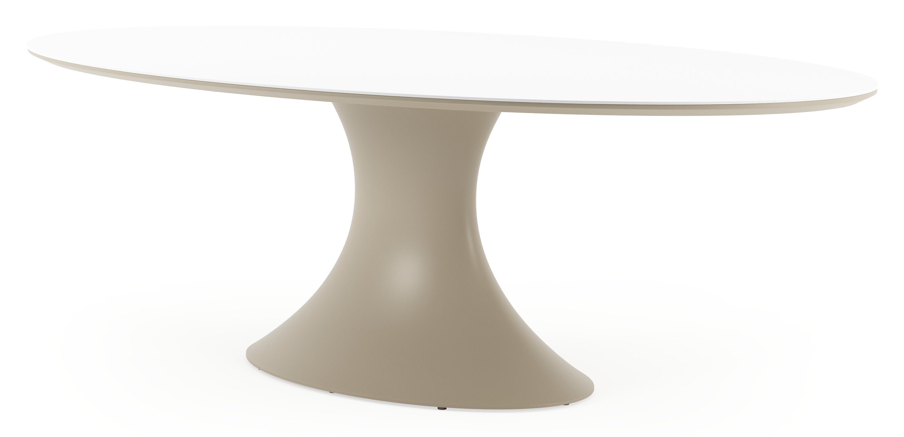 Fano tuintafel ovaal in beige aluminium en volkeramiek Arctic White - L 240 x B 135 x H 75 cm | Exterioo tuinmeubelen