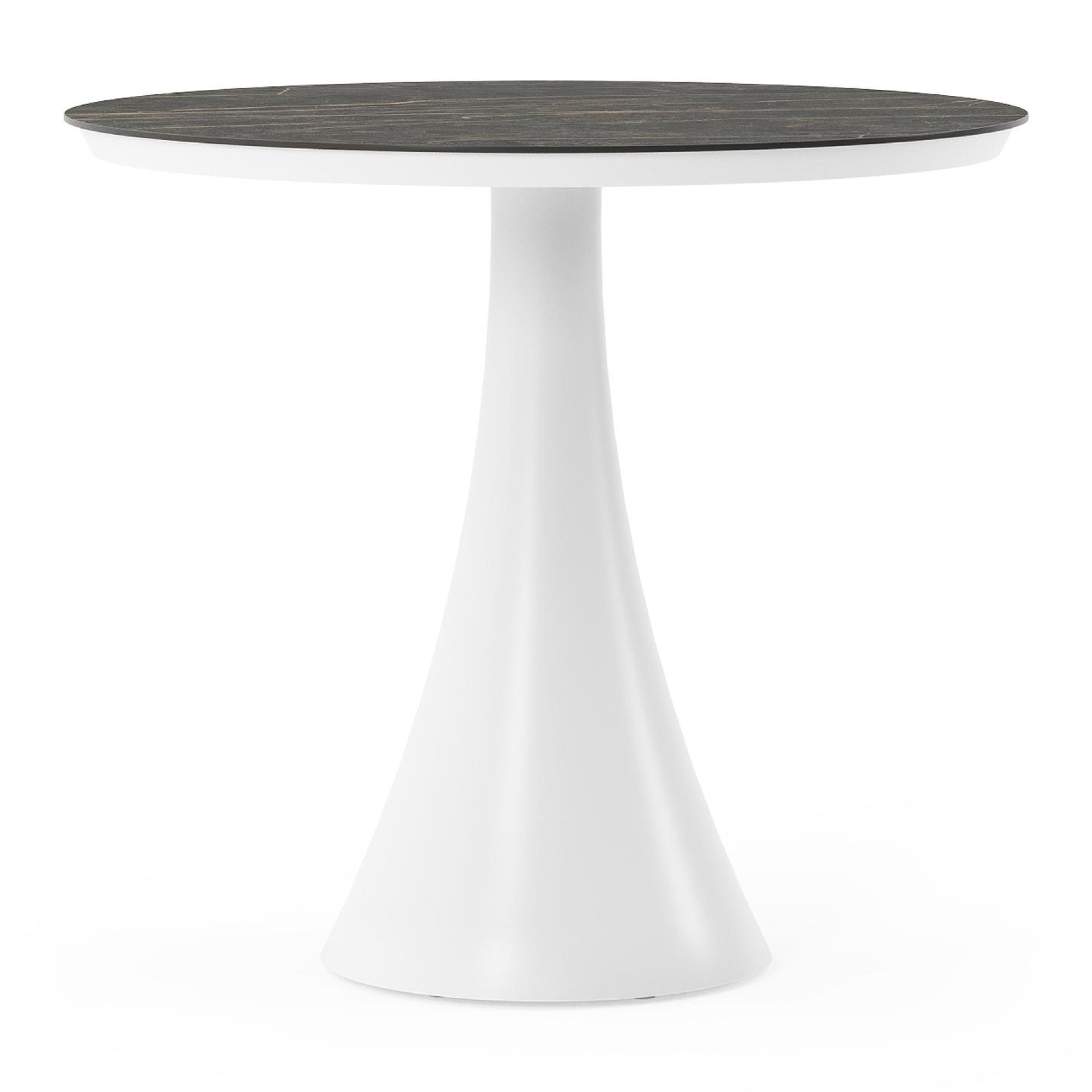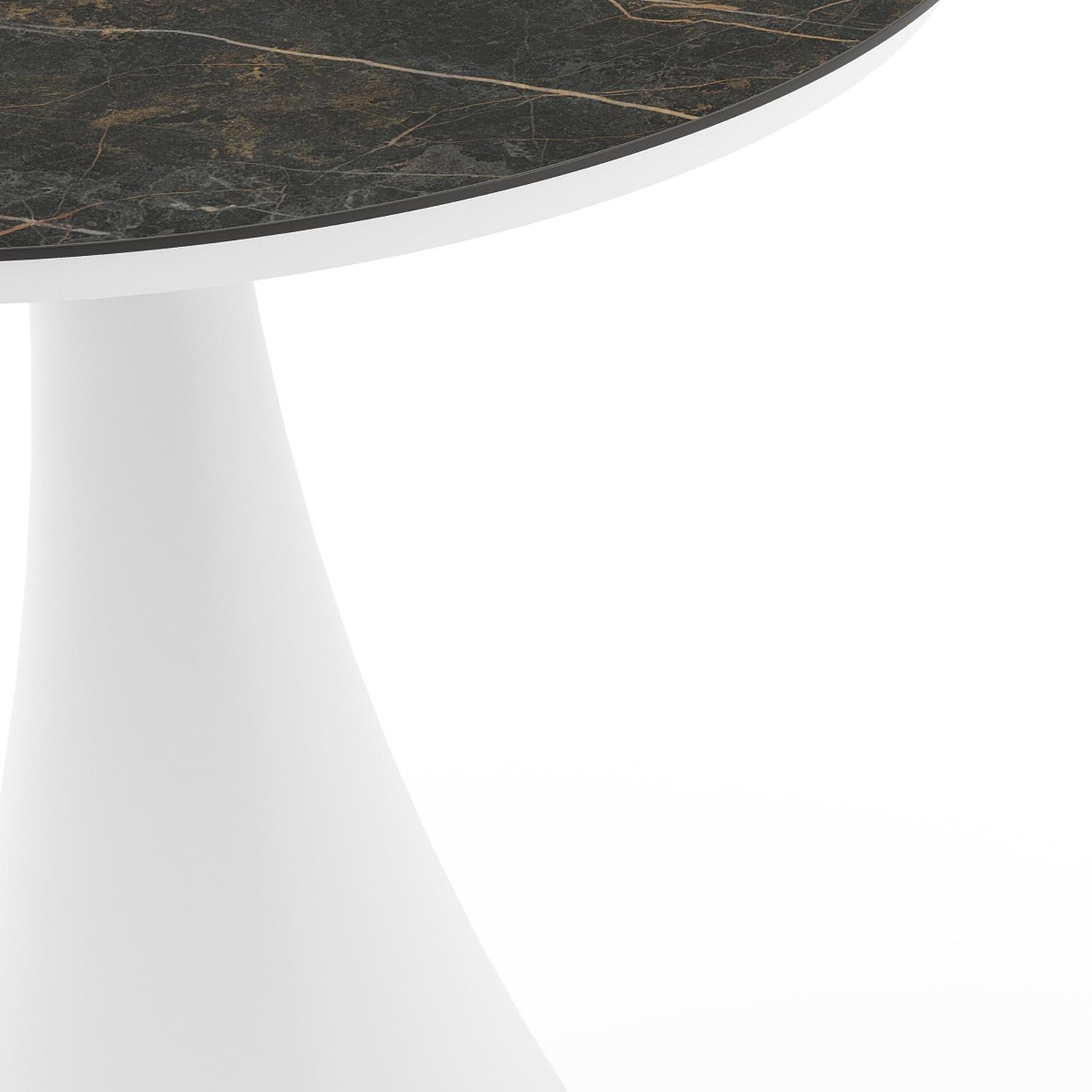 Fano tuintafel rond in wit aluminium en volkeramiek Black Obsession - Dia. 85 x H 75 cm | Exterioo tuinmeubelen