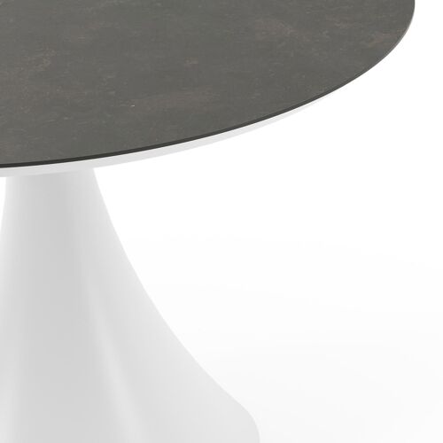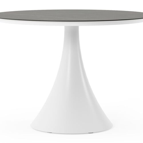 Fano tuintafel rond in wit aluminium en volkeramiek Calatorao - Dia. 110 x H 75 cm | Exterioo