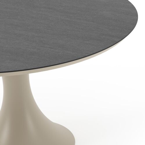 Fano tuintafel rond in beige aluminium en volkeramiek Basalt Black - Dia. 130 x H 75 cm | Exterioo