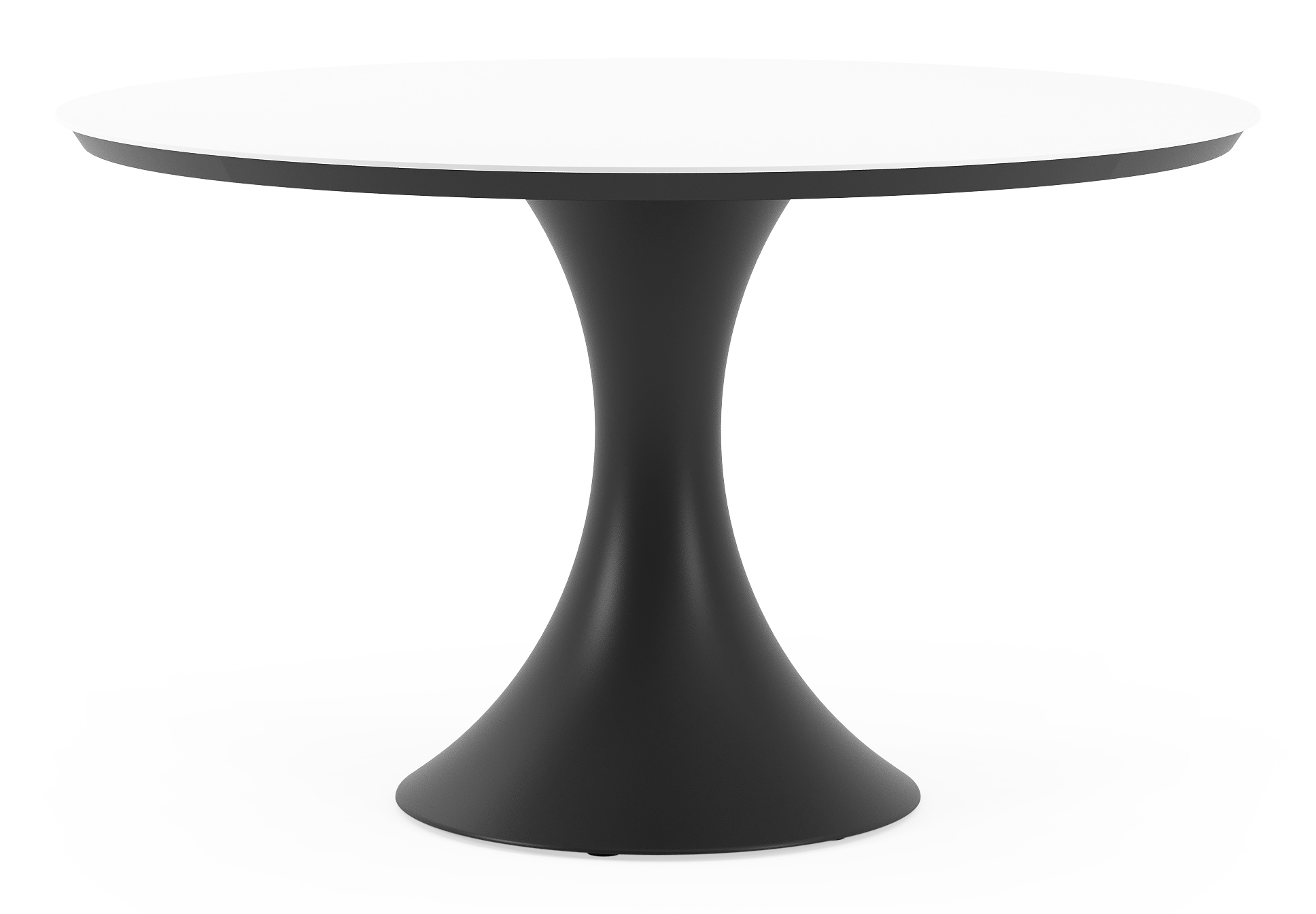Fano tuintafel rond in zwart aluminium en volkeramiek Arctic White - Dia. 130 x H 75 cm | Exterioo tuinmeubelen