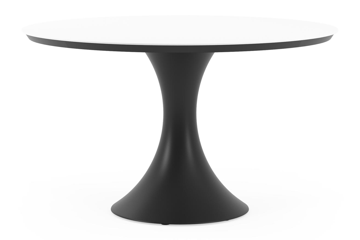 Fano tuintafel rond in zwart aluminium en volkeramiek Arctic White - Dia. 130 x H 75 cm | Exterioo