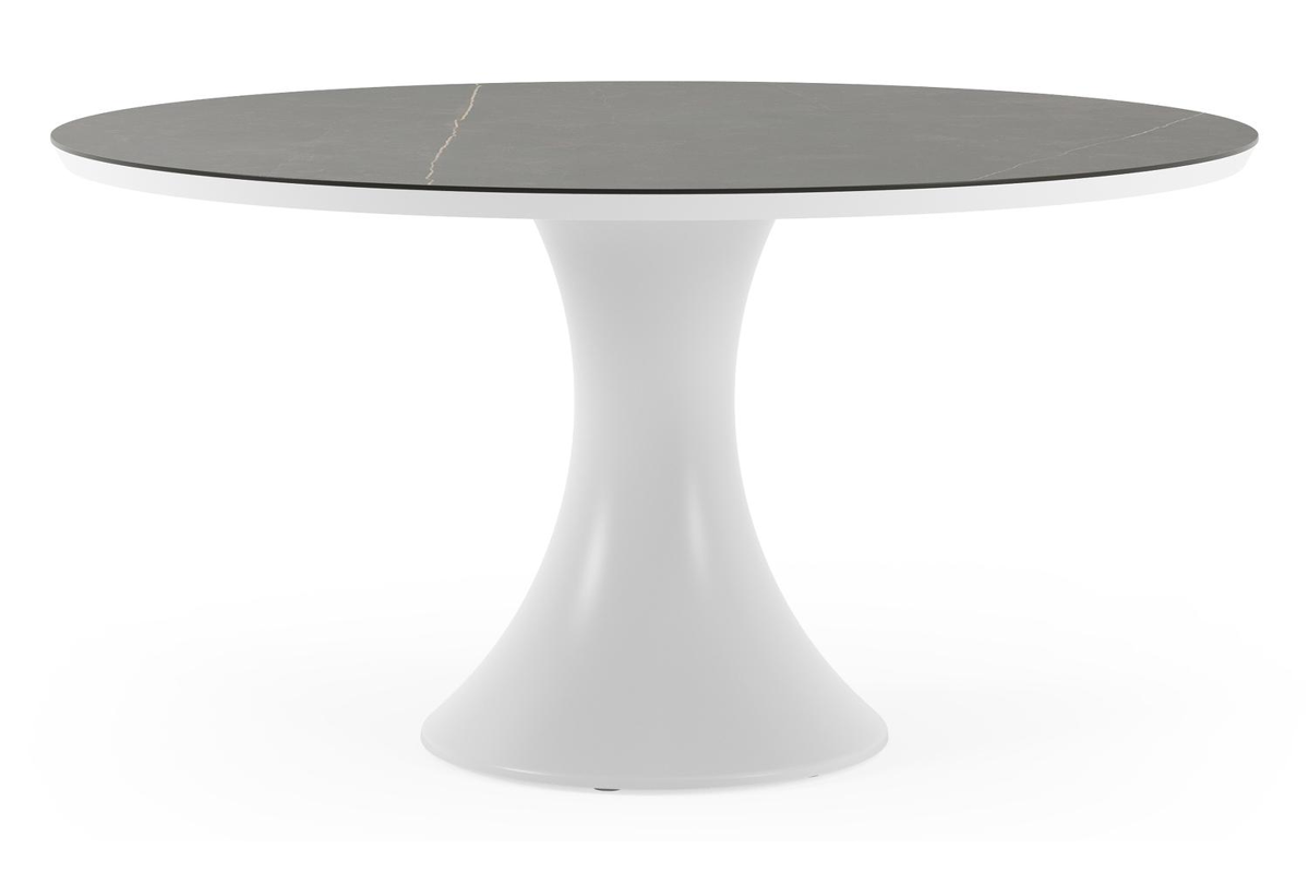 Fano tuintafel rond in wit aluminium en volkeramiek Calatorao - Dia. 148 x H 75 cm | Exterioo