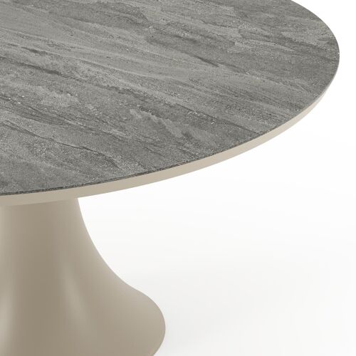 Fano tuintafel rond in beige aluminium en volkeramiek Aspen Grey - Dia. 148 x H 75 cm | Exterioo