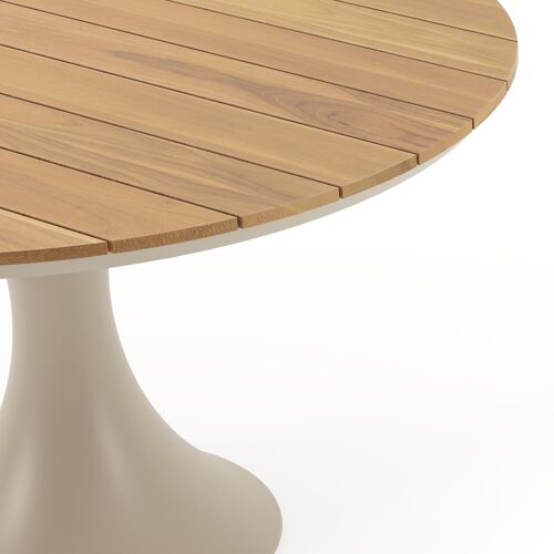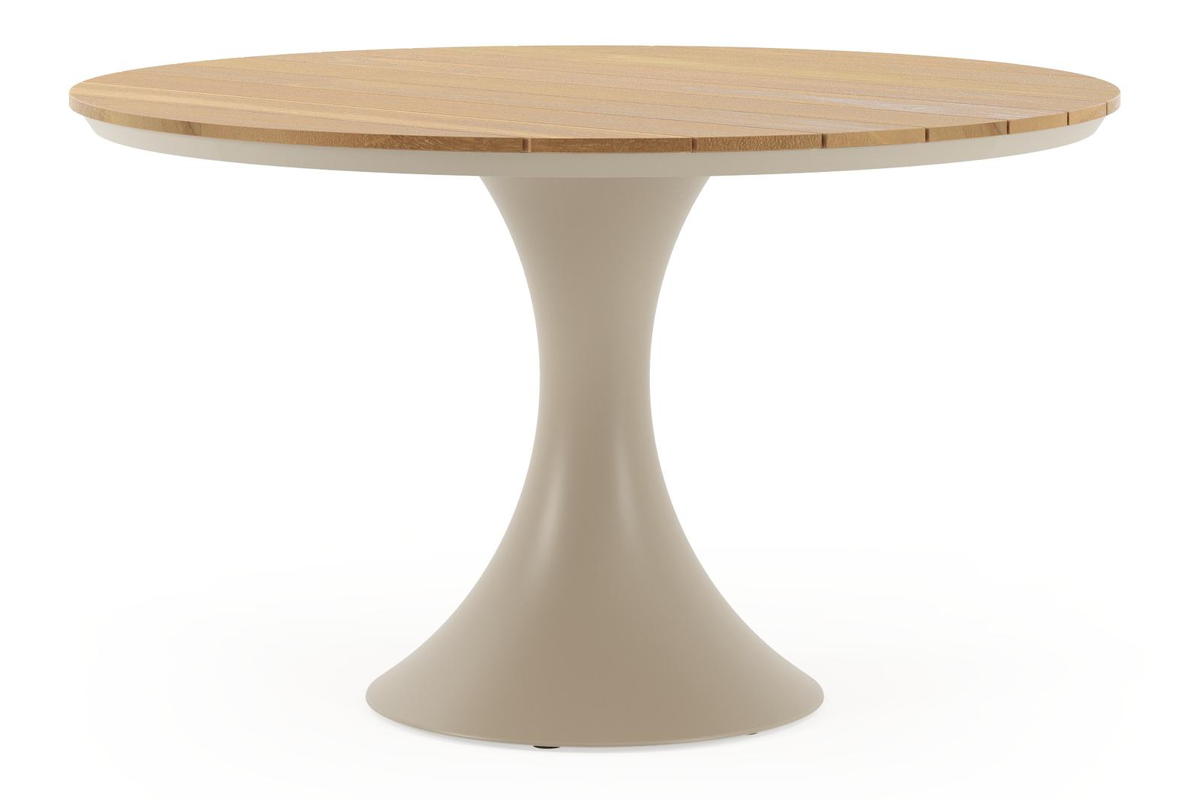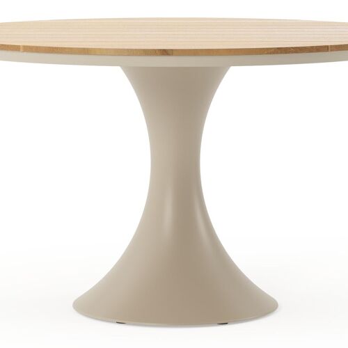 Fano tuintafel rond in beige aluminium en teak - Dia. 130 cm | Exterioo