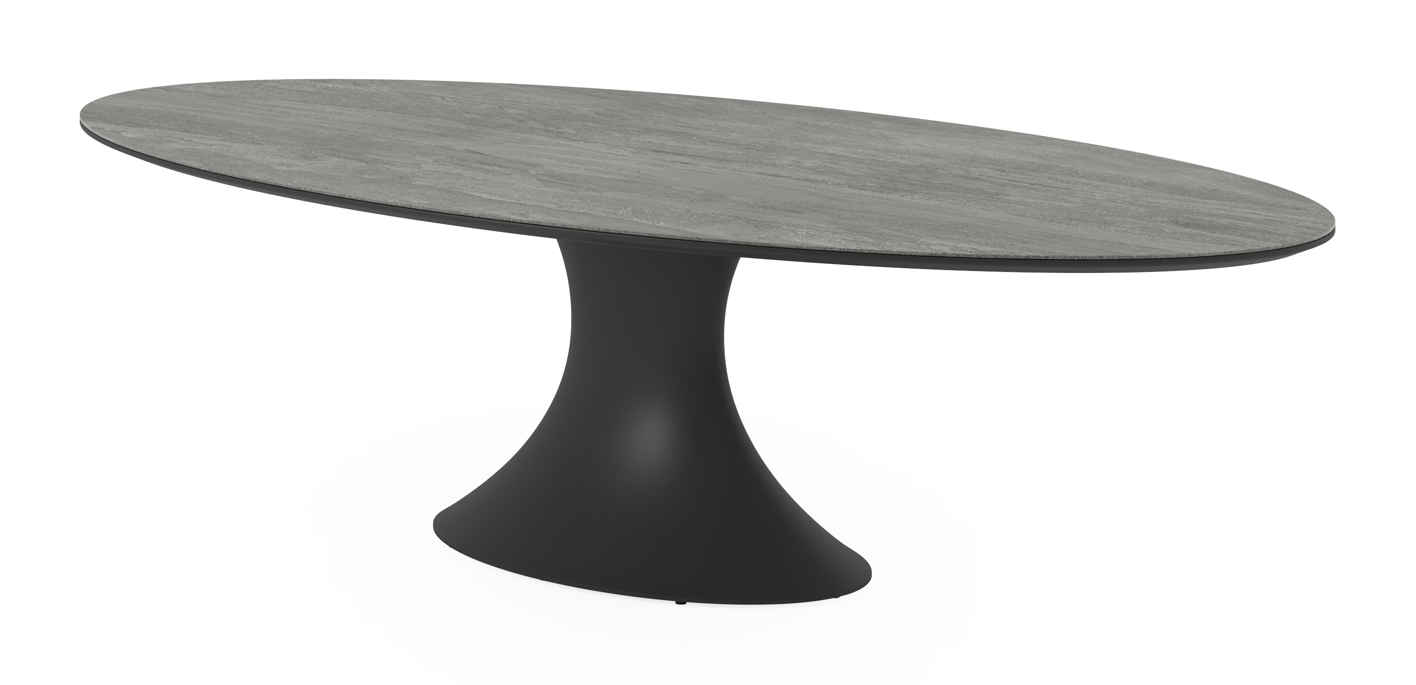 Het Aspen Grey tafelblad is een mat blad met grijszwarte kleurschakeringen die diepte en karakter toevoegen aan je tafel.