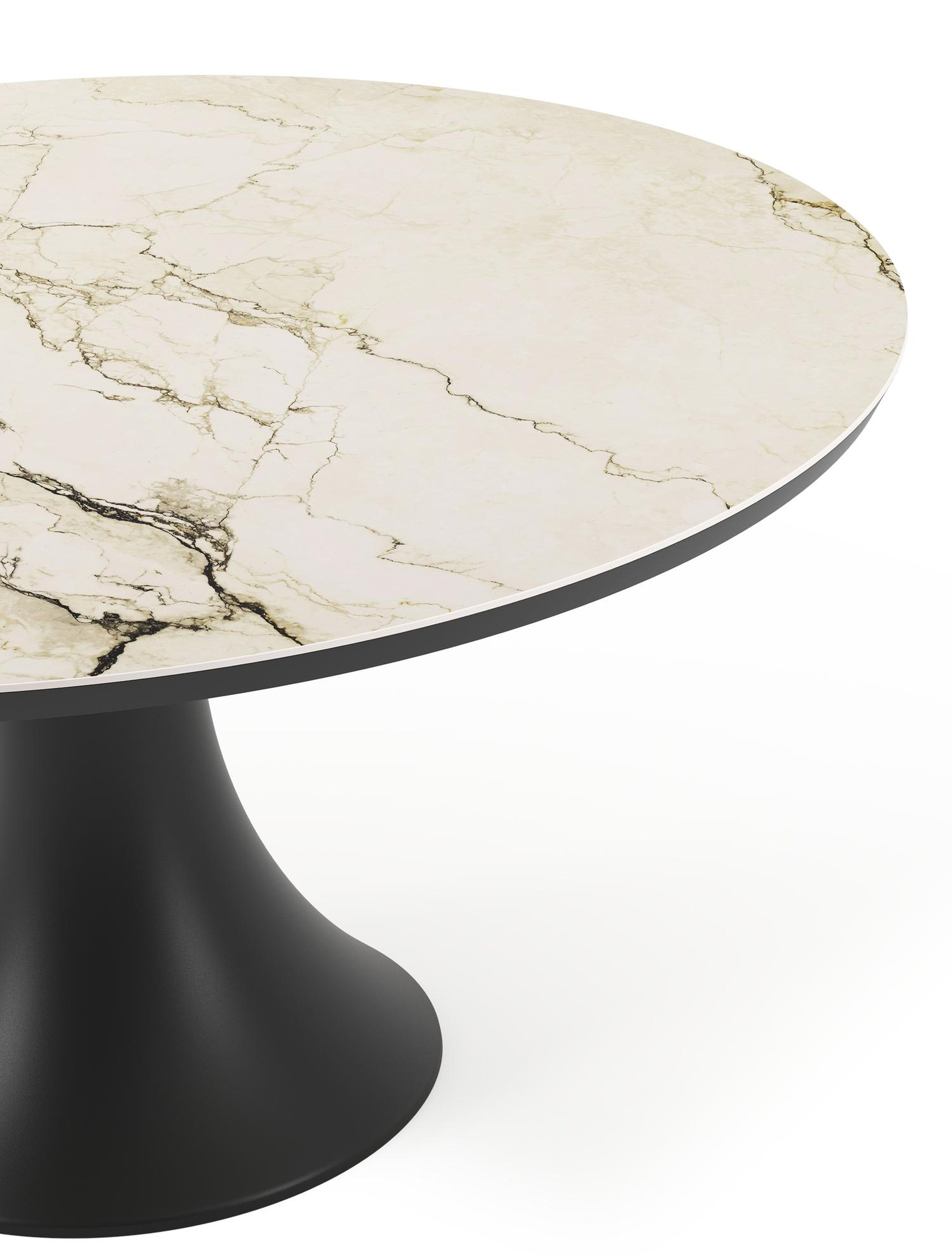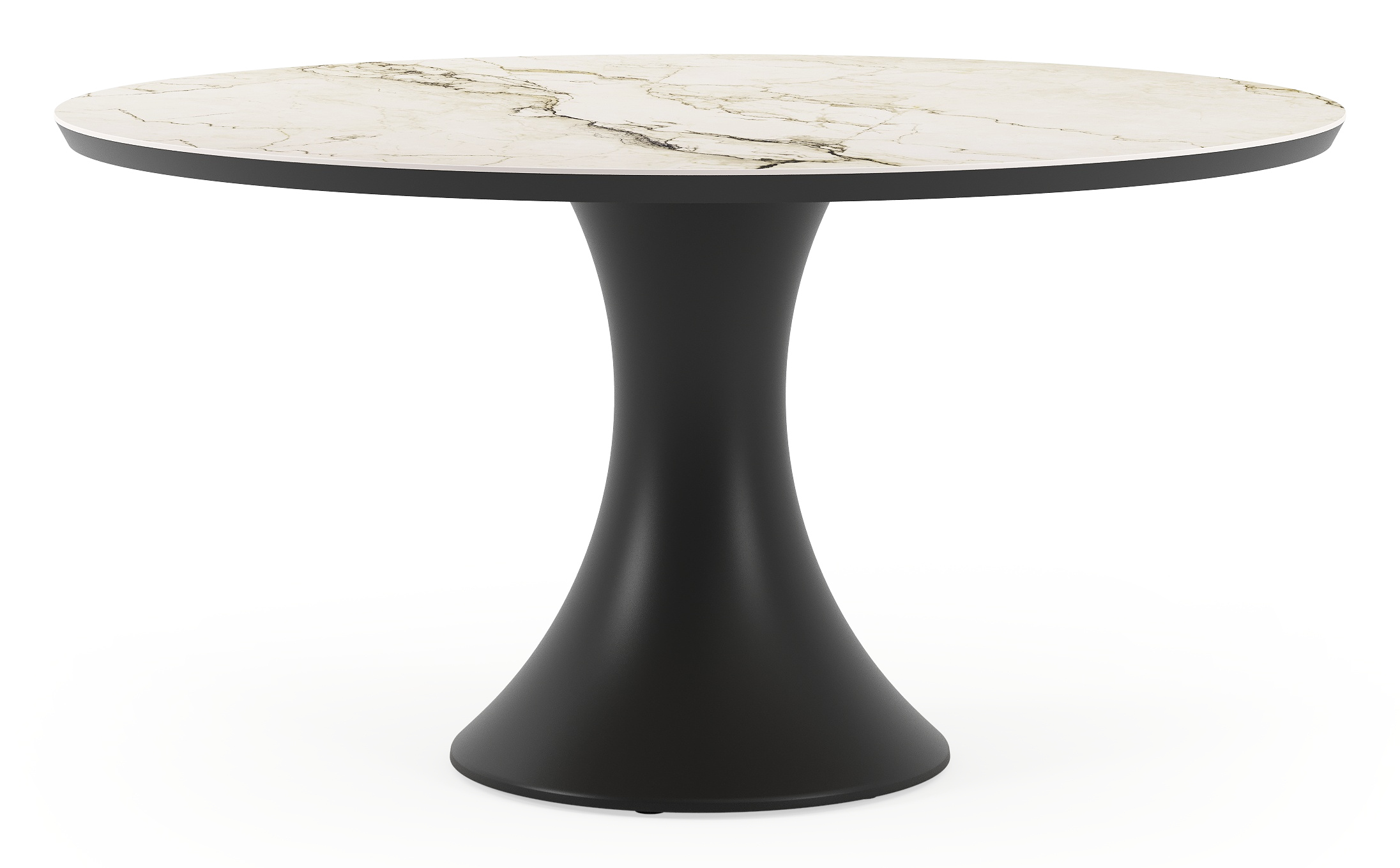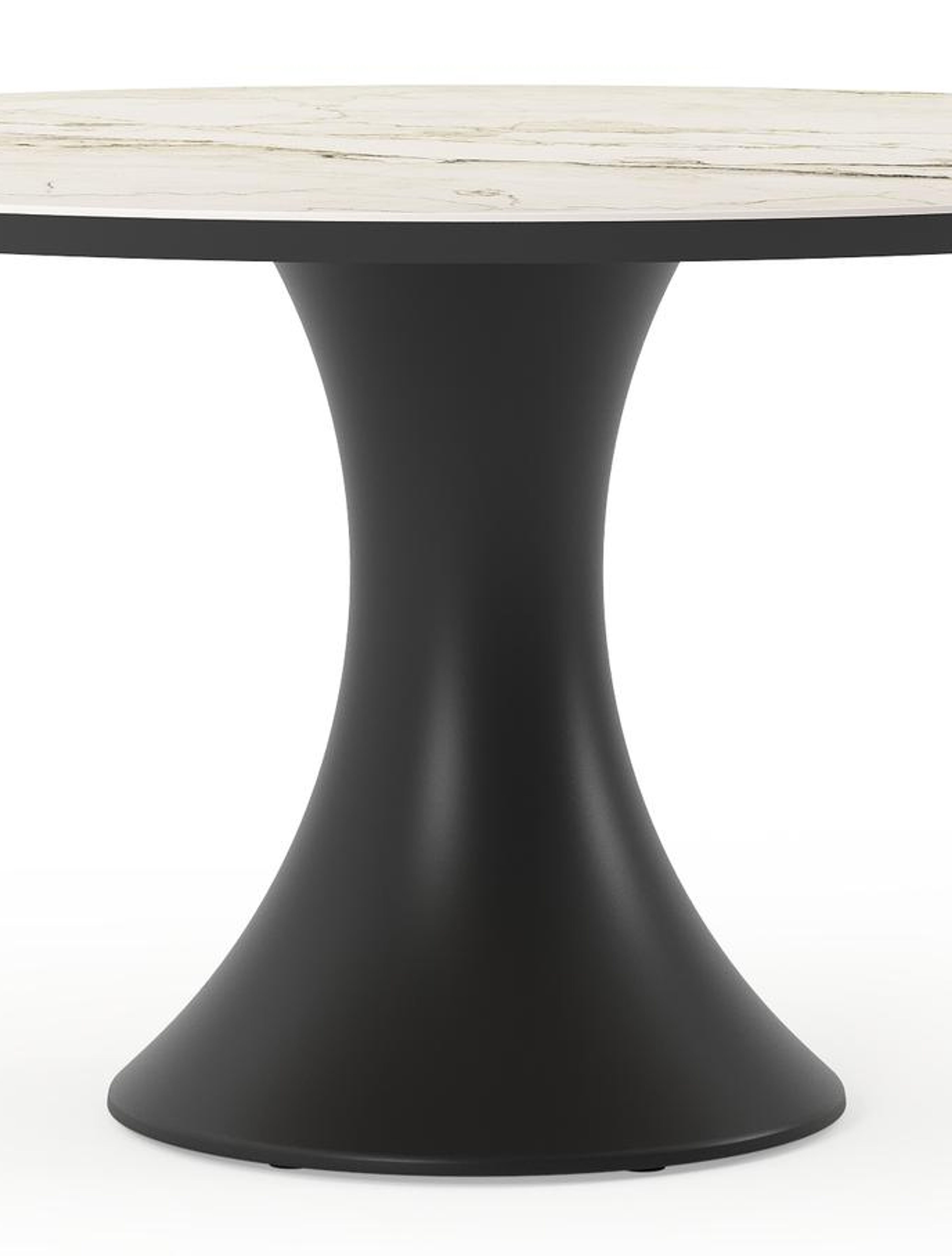 De Fano collectie onderscheidt zich door zijn trendy ronde tafel met de kenmerkende trompetpoot. Deze eigentijdse tafel biedt niet alleen een modieuze uitstraling, maar creëert ook een gezellige tafelbeleving, waarbij mensen tegenover elkaar kunnen zitten.