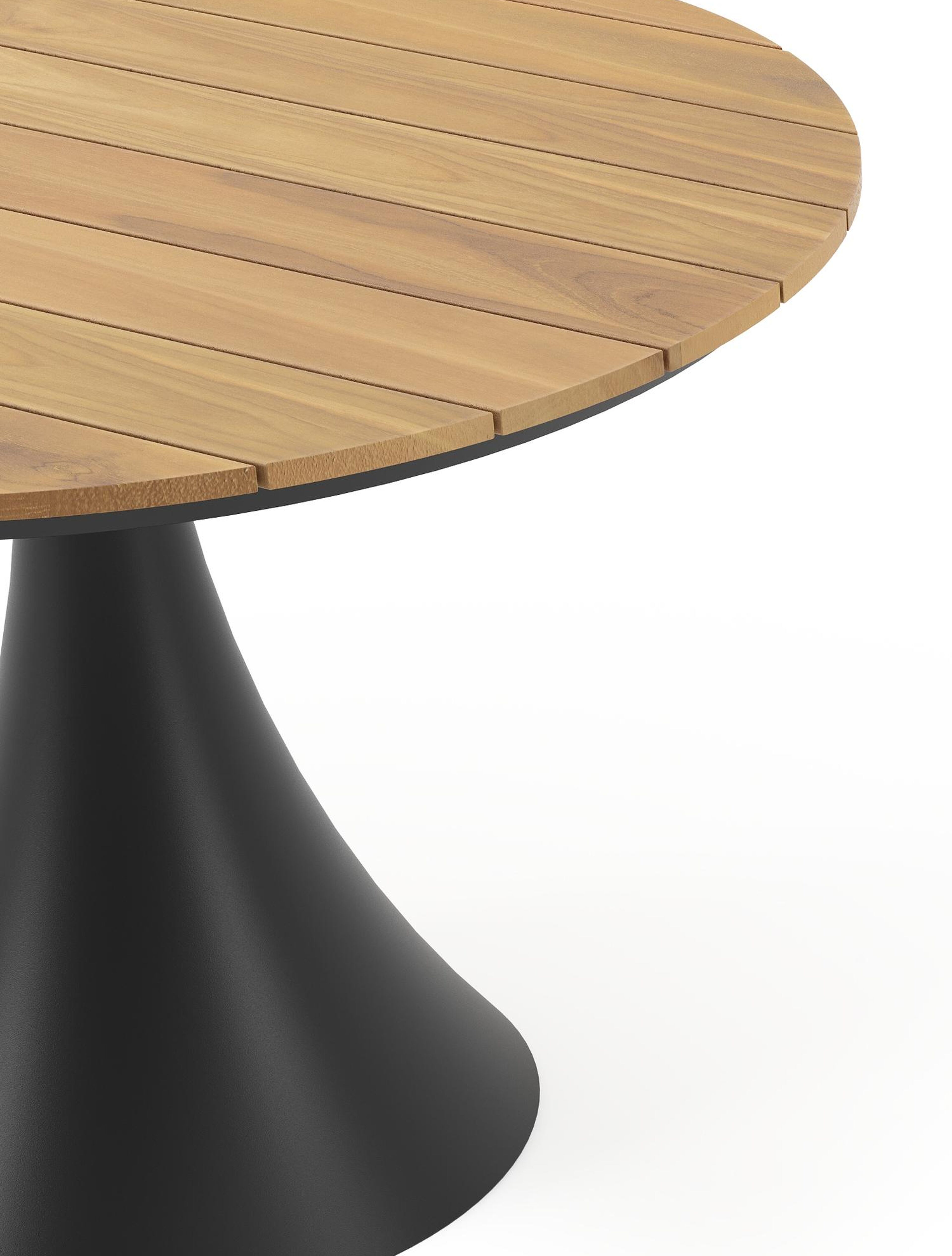 Een tafelblad uit teak staat gelijk aan bijzondere kwaliteit en natuurlijk design. Teak is een kwalitatieve houtsoort gekenmerkt door zijn hardheid. Aangezien hout leeft, kan de structuur of kleur licht anders zijn dan op het beeld weergegeven.