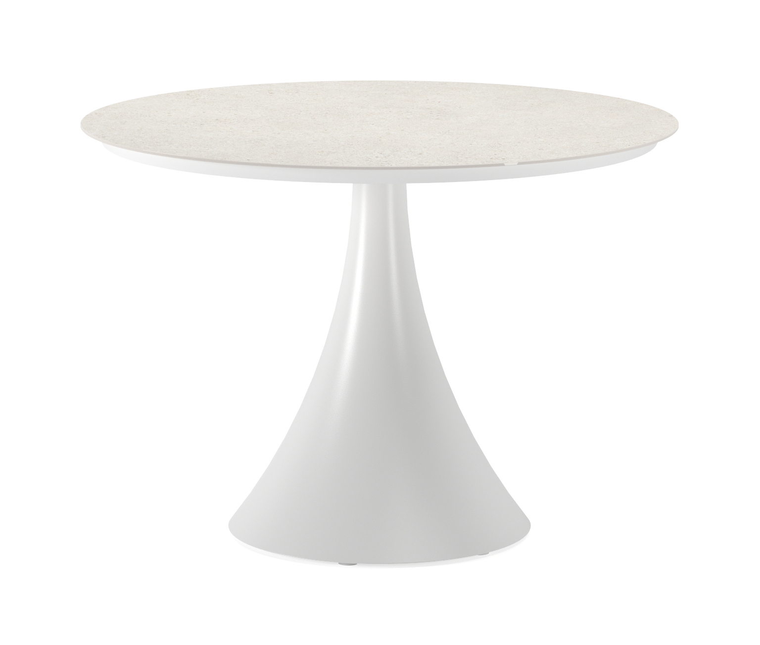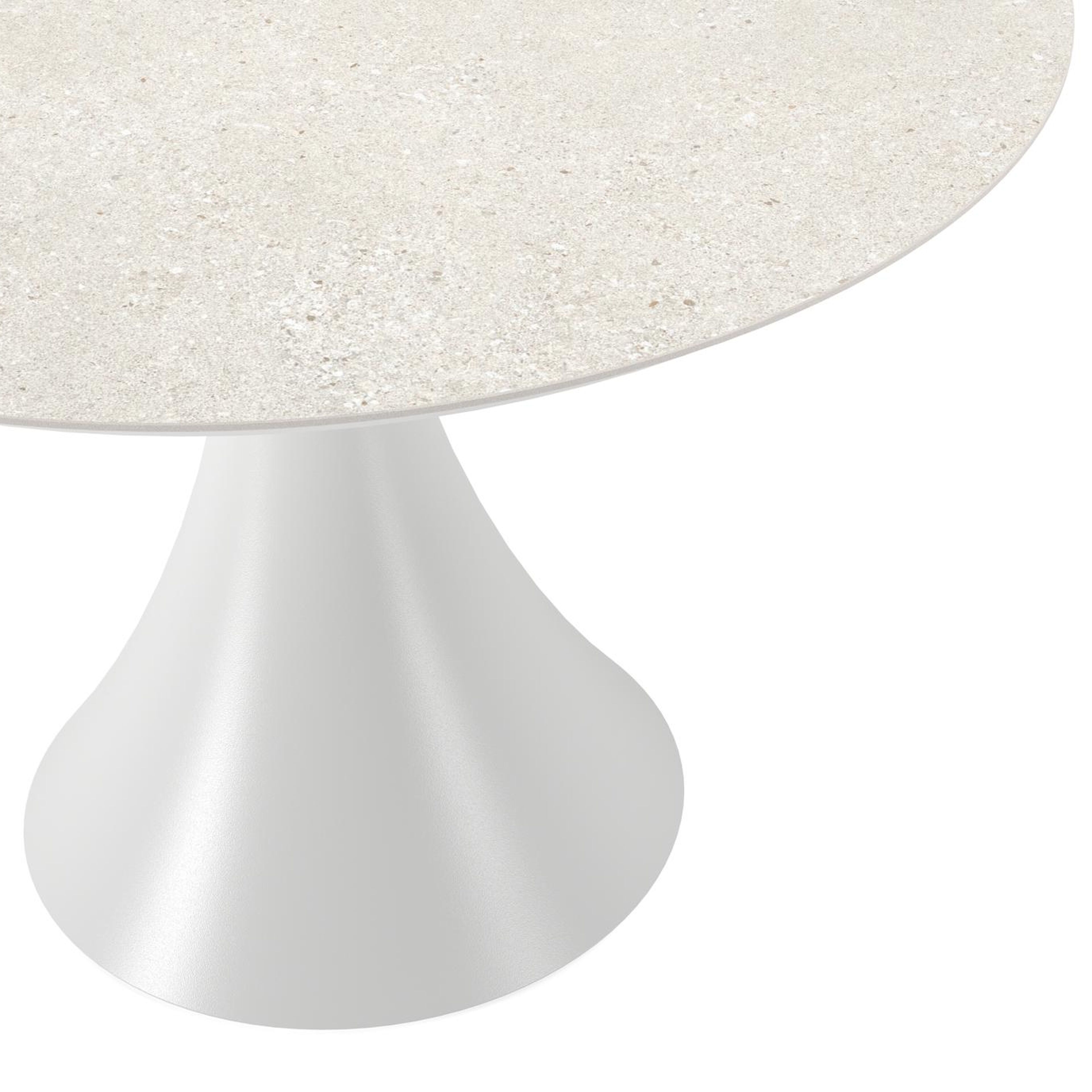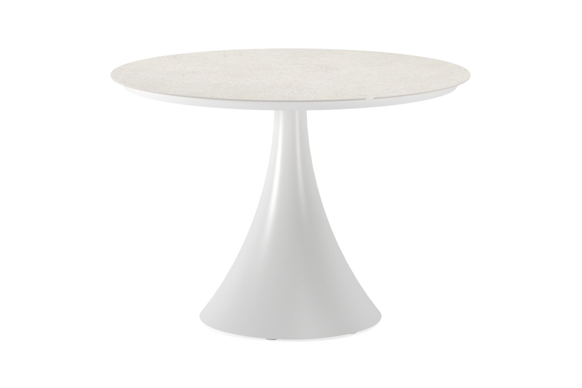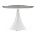 De ronde Fano tafel is een trendy tafel dankzij zijn typische trompetpoot. Bovendien heb je aan een ronde tafel een gezellige tafelbeleving omdat je tegenover elkaar kunt zitten. Het frame is gemaakt van aluminium een licht, maar sterk en roestvrij materiaal dat zeer geschikt is voor tuinmeubelen. Deze tafel is afgewerkt met een Shilin tafelblad. Dit is een nieuwkomer in ons assortiment. De aardse kleurschakeringen passen perfect aan bij onze nieuwe outdoortrends. In het tafelblad is er een licht reliëf te voelen, waardoor het Shilin blad de look & feel heeft van echte natuursteen. In het blad is een fijne glinster aanwezig. Het voordeel van volkeramische tafelbladen is dat ze krasbestendig zijn en bestand zijn tegen alle weersomstandigheden.