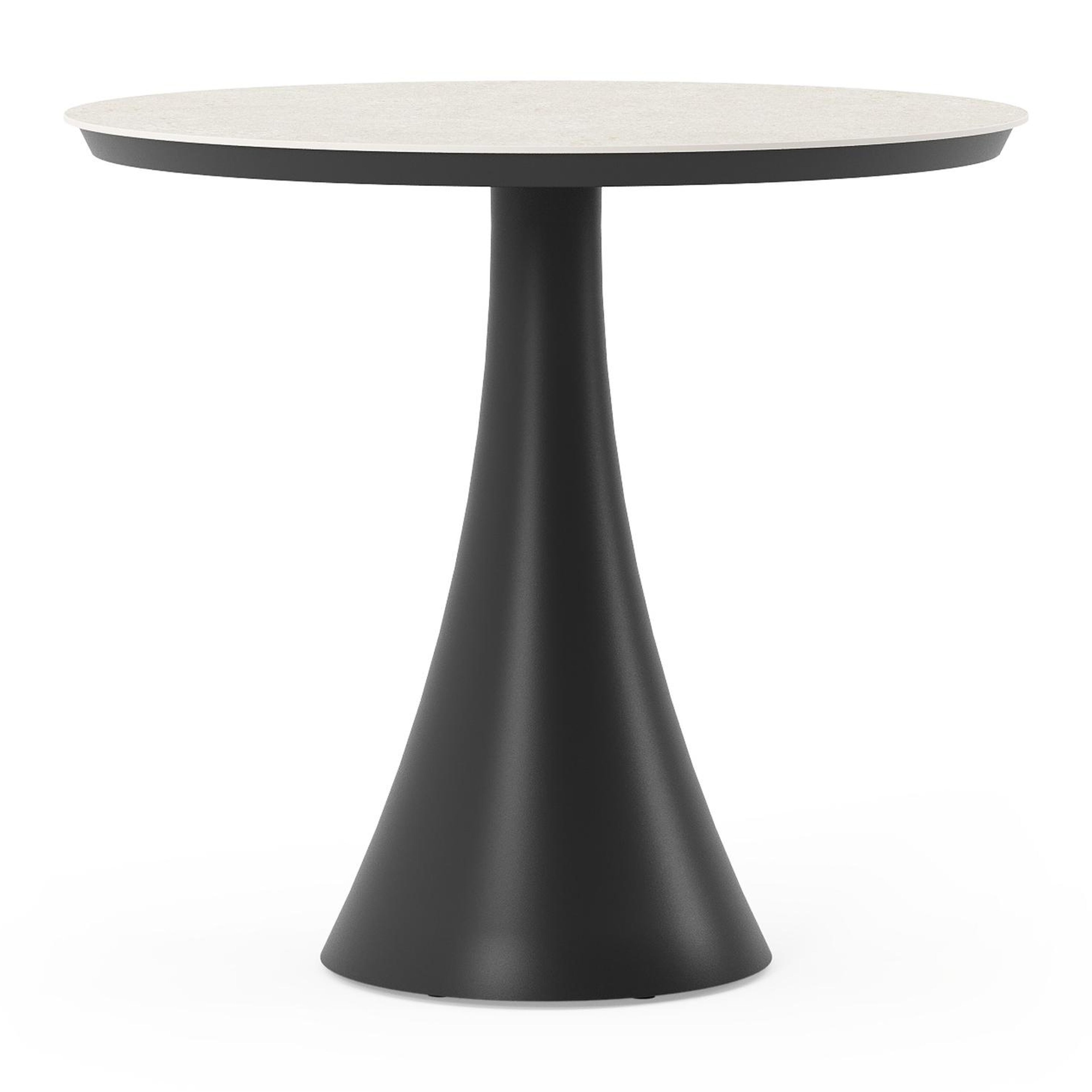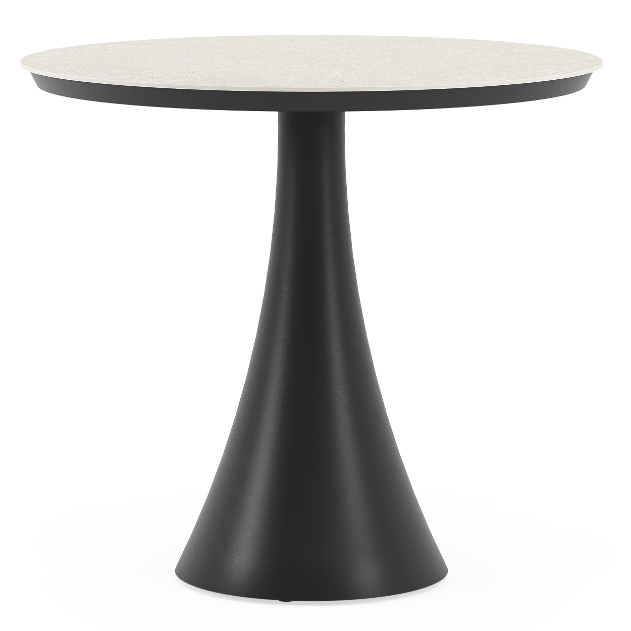 De ronde Fano tafel is een trendy tafel dankzij zijn typische trompetpoot. Bovendien heb je aan een ronde tafel een gezellige tafelbeleving omdat je tegenover elkaar kunt zitten. Het frame is gemaakt van aluminium een licht, maar sterk en roestvrij materiaal dat zeer geschikt is voor tuinmeubelen. Deze tafel is afgewerkt met een Shilin tafelblad. Dit is een nieuwkomer in ons assortiment. De aardse kleurschakeringen passen perfect aan bij onze nieuwe outdoortrends. In het tafelblad is er een licht reliëf te voelen, waardoor het Shilin blad de look & feel heeft van echte natuursteen. In het blad is een fijne glinster aanwezig. Het voordeel van volkeramische tafelbladen is dat ze krasbestendig zijn en bestand zijn tegen alle weersomstandigheden.