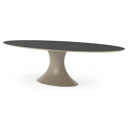 De ovale Fano heeft een centrale, typische stijlvolle poot. Het frame is gemaakt van aluminium een licht, maar sterk en roestvrij materiaal dat zeer geschikt is voor tuinmeubelen. Deze tafel is afgewerkt met een Nero Black tafelblad. Dit tafelblad is een aanrader voor wie houdt van minimalistisch en tijdloos design. Zoals de naam doet vermoeden is dit een vrij effen zwart tafelblad met een lichte spikkel in. Het voordeel van volkeramische tafelbladen is dat ze krasbestendig zijn en bestand zijn tegen alle weersomstandigheden.