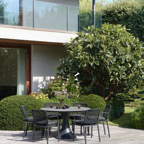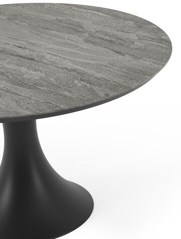 Fano tuintafel in zwart aluminium en volkeramiek aspen grey - Dia. 130 x H 75 cm | Exterioo