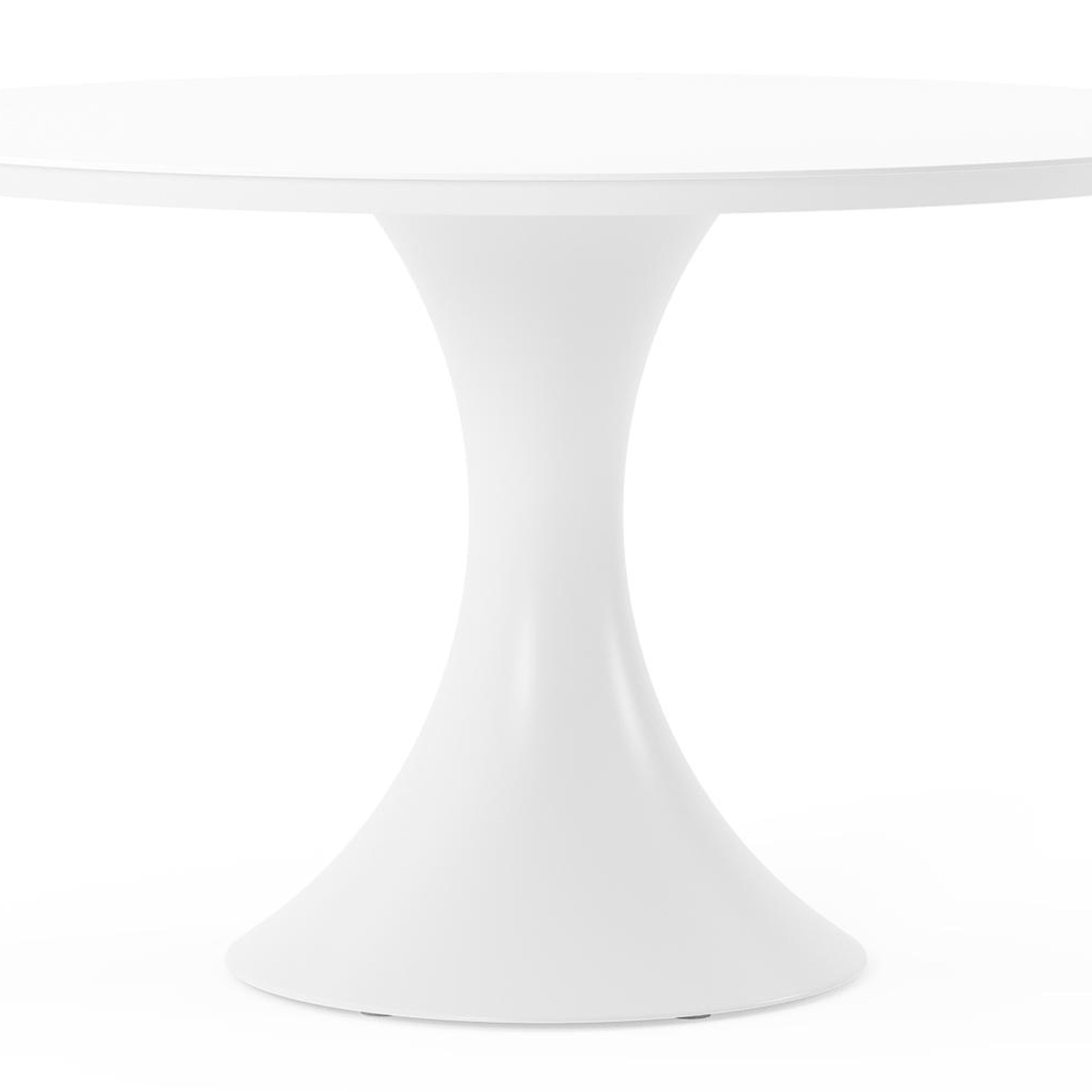 De ronde Fano tafel is een trendy tafel dankzij zijn typische trompetpoot. Bovendien heb je aan een ronde tafel een gezellige tafelbeleving omdat je tegenover elkaar kunt zitten. Het frame is gemaakt van aluminium een licht, maar sterk en roestvrij materiaal dat zeer geschikt is voor tuinmeubelen. Deze tafel is afgewerkt met een Arctic White tafelblad. Een tafelblad met een effen, tijdloos en wit kleur. Het voordeel van volkeramische tafelbladen is dat ze krasbestendig zijn en bestand zijn tegen alle weersomstandigheden.