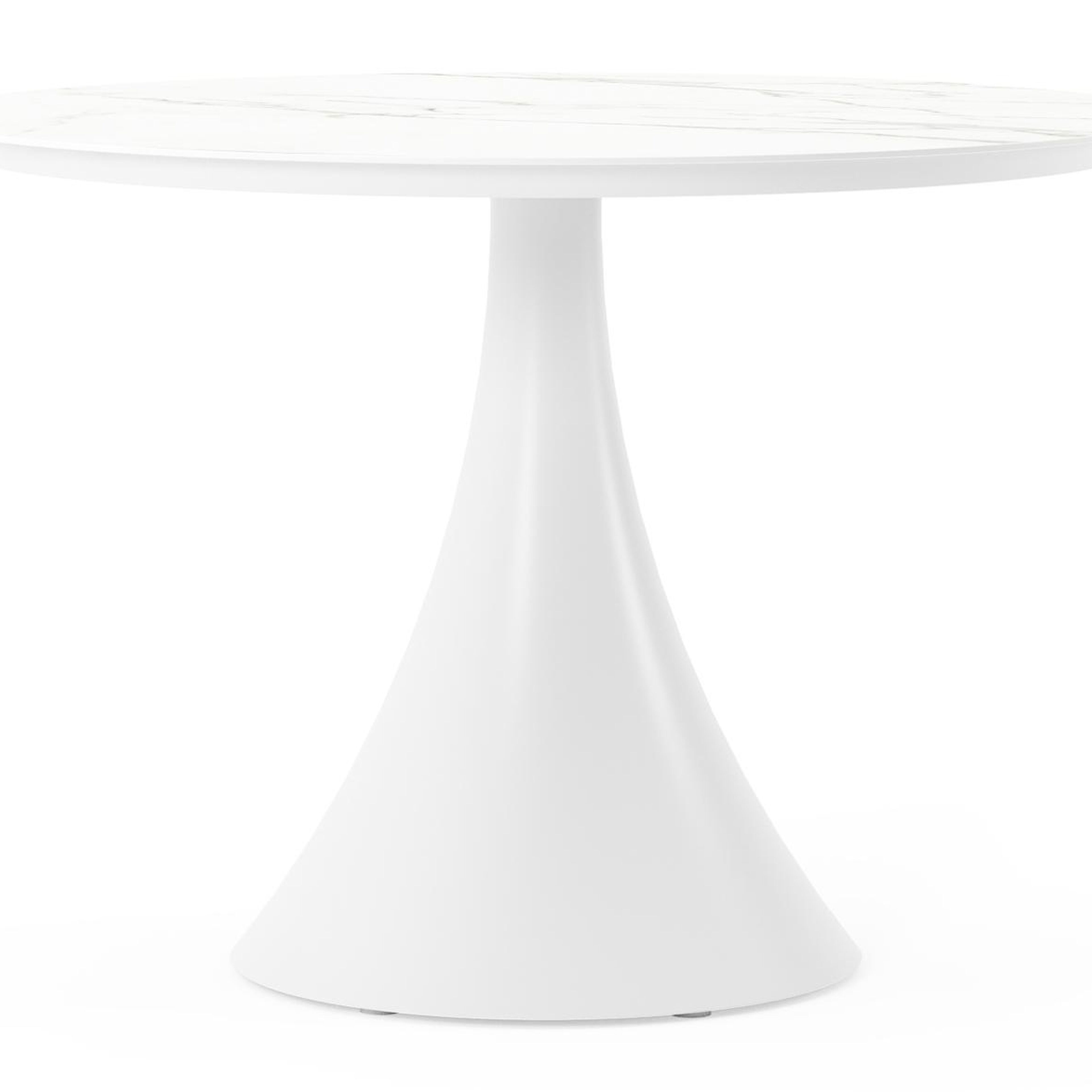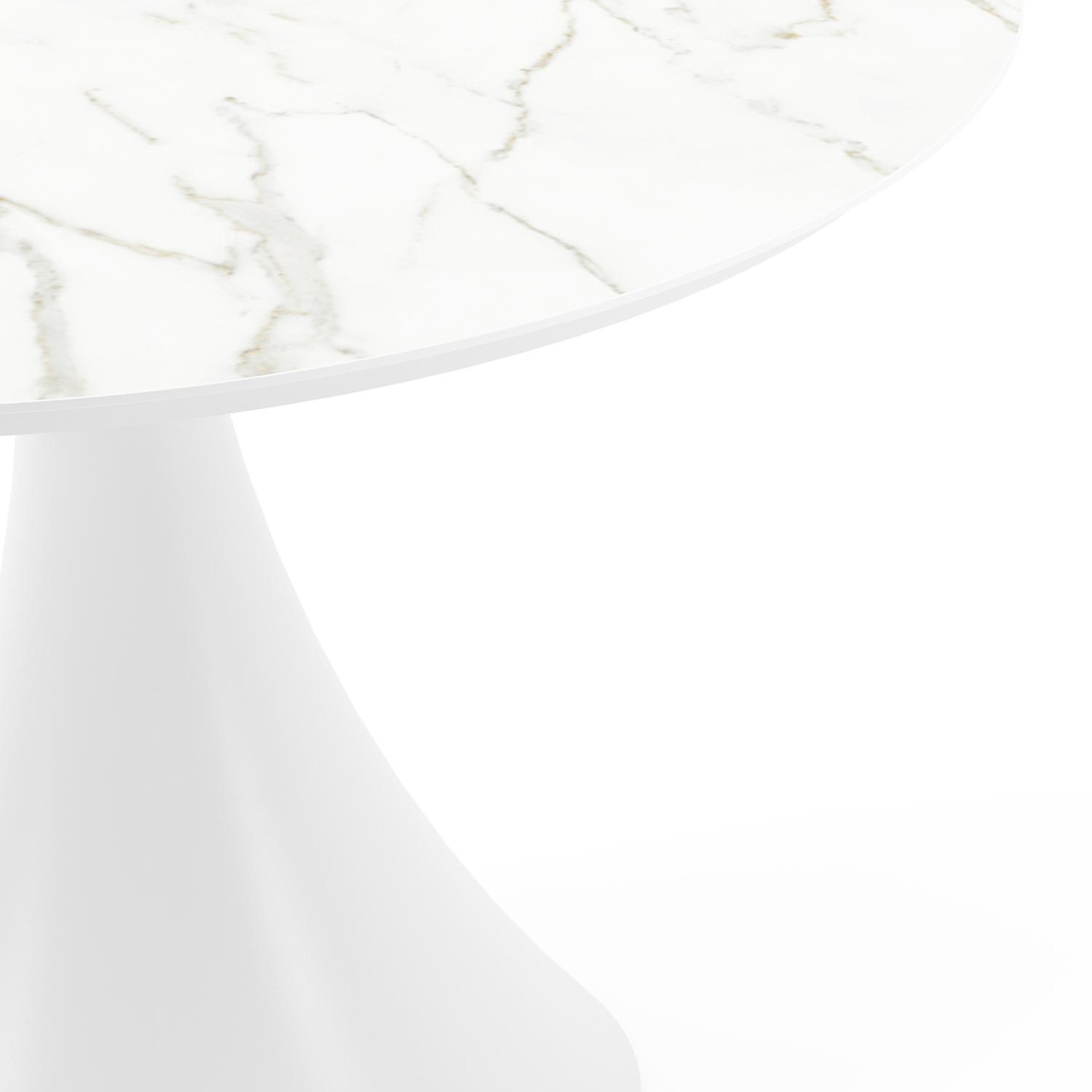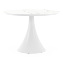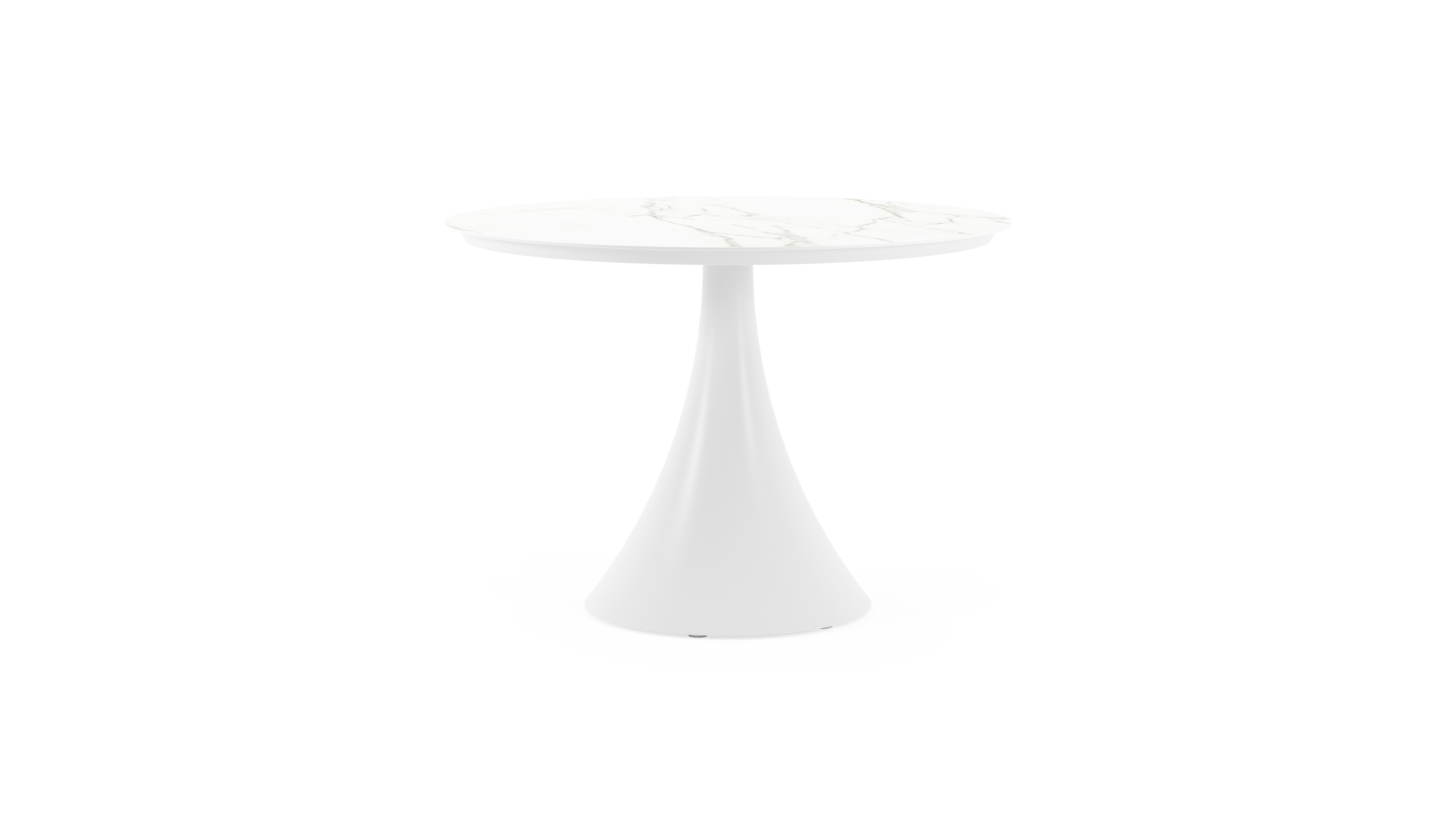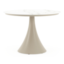 De ronde Fano tafel is een trendy tafel dankzij zijn typische trompetpoot. Bovendien heb je aan een ronde tafel een gezellige tafelbeleving omdat je tegenover elkaar kunt zitten. Het frame is gemaakt van aluminium een licht, maar sterk en roestvrij materiaal dat zeer geschikt is voor tuinmeubelen. Deze tafel is afgewerkt met een Calacatta tafelblad. De basis van het blad is wit, maar is afgewerkt met grijze aders die een prachtige marmerlook creëren. Het voordeel van volkeramische tafelbladen is dat ze krasbestendig zijn en bestand zijn tegen alle weersomstandigheden.