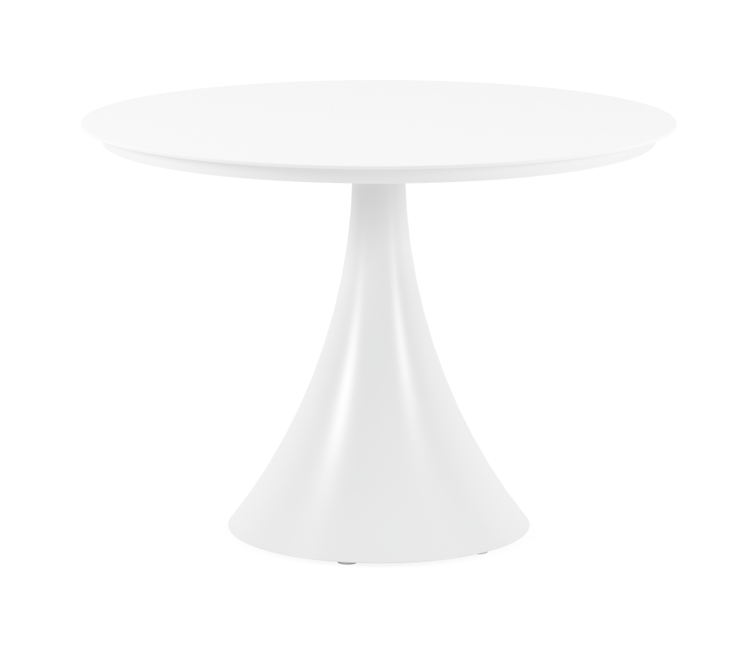 De ronde Fano tafel is een trendy tafel dankzij zijn typische trompetpoot. Bovendien heb je aan een ronde tafel een gezellige tafelbeleving omdat je tegenover elkaar kunt zitten. Het frame is gemaakt van aluminium een licht, maar sterk en roestvrij materiaal dat zeer geschikt is voor tuinmeubelen. Deze tafel is afgewerkt met een Arctic White tafelblad. Een tafelblad met een effen, tijdloos en wit kleur. Het voordeel van volkeramische tafelbladen is dat ze krasbestendig zijn en bestand zijn tegen alle weersomstandigheden.