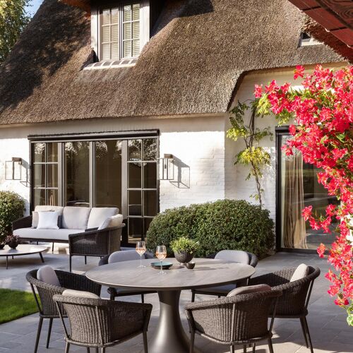 Fano tuintafel in zwart aluminium en volkeramiek aspen grey - Dia. 148 x H 75 cm | Exterioo