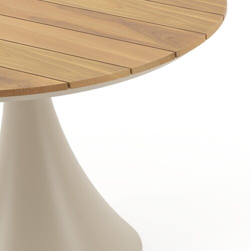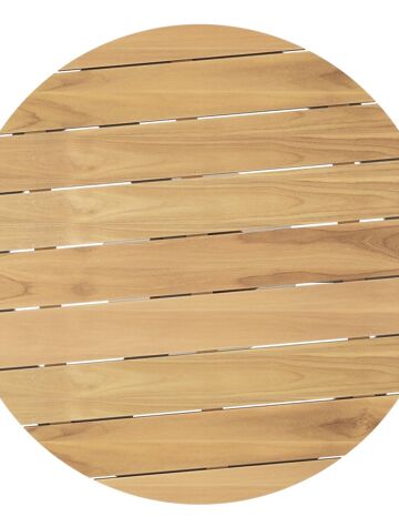 Een tafelblad uit teak staat gelijk aan bijzondere kwaliteit en natuurlijk design. Teak is een kwalitatieve houtsoort gekenmerkt door zijn hardheid. Aangezien hout leeft, kan de structuur of kleur licht anders zijn dan op het beeld weergegeven.
