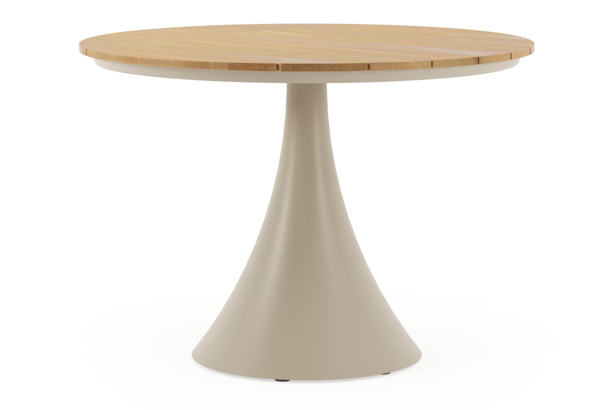 De Fano collectie onderscheidt zich door zijn trendy ronde tafel met de kenmerkende trompetpoot. Deze eigentijdse tafel biedt niet alleen een modieuze uitstraling, maar creëert ook een gezellige tafelbeleving, waarbij mensen tegenover elkaar kunnen zitten.