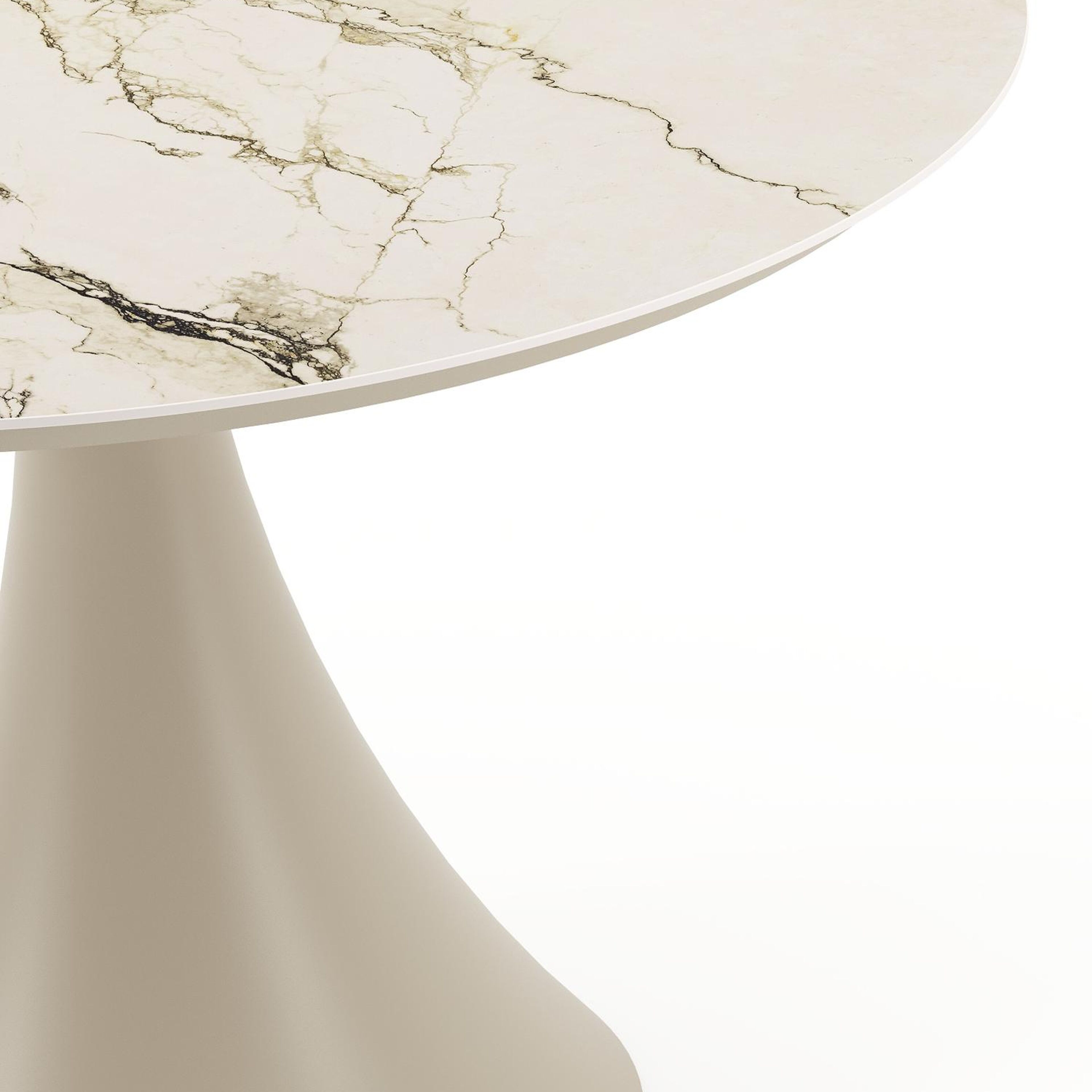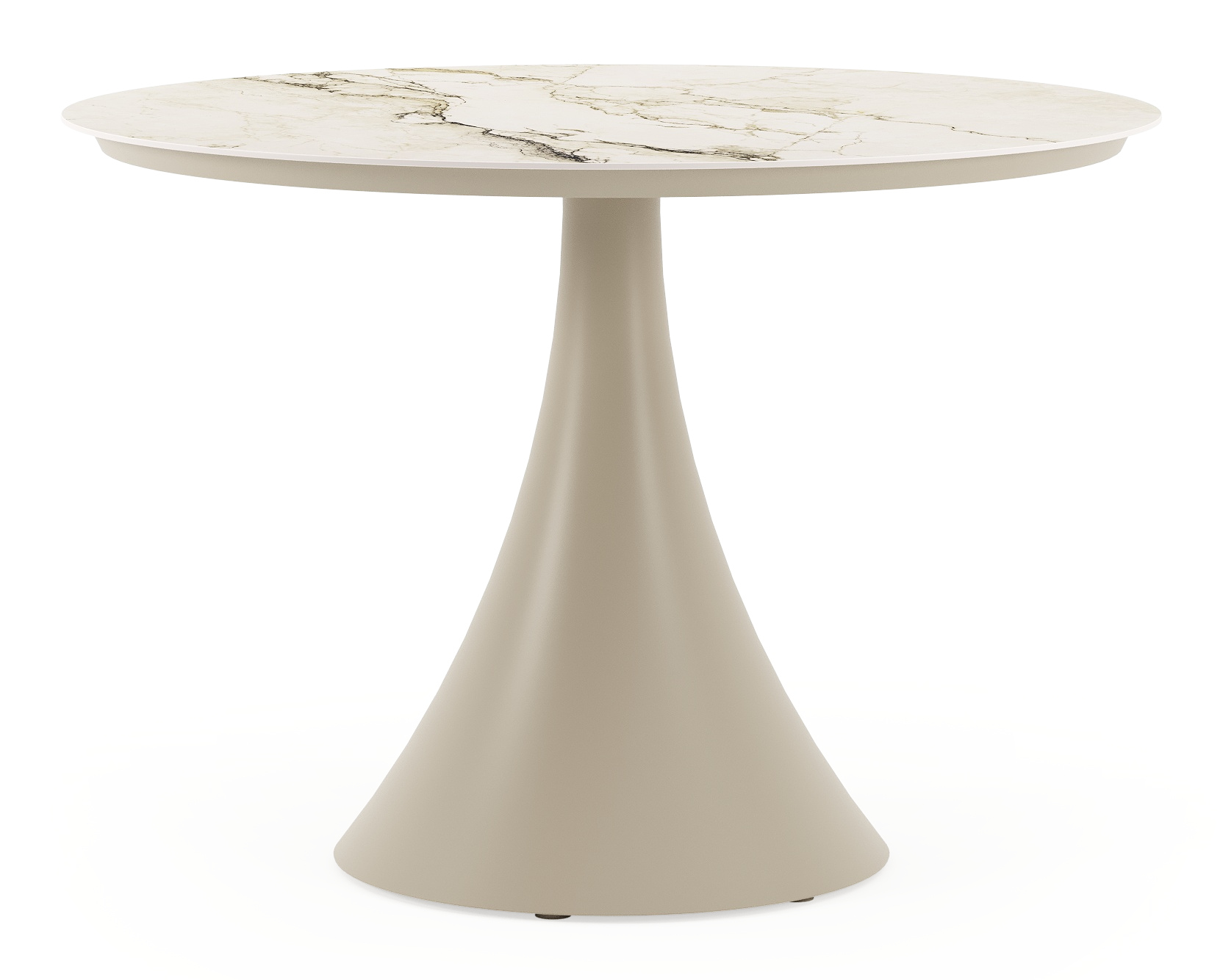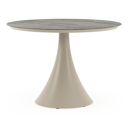 De Fano collectie onderscheidt zich door zijn trendy ronde tafel met de kenmerkende trompetpoot. Deze eigentijdse tafel biedt niet alleen een modieuze uitstraling, maar creëert ook een gezellige tafelbeleving, waarbij mensen tegenover elkaar kunnen zitten.