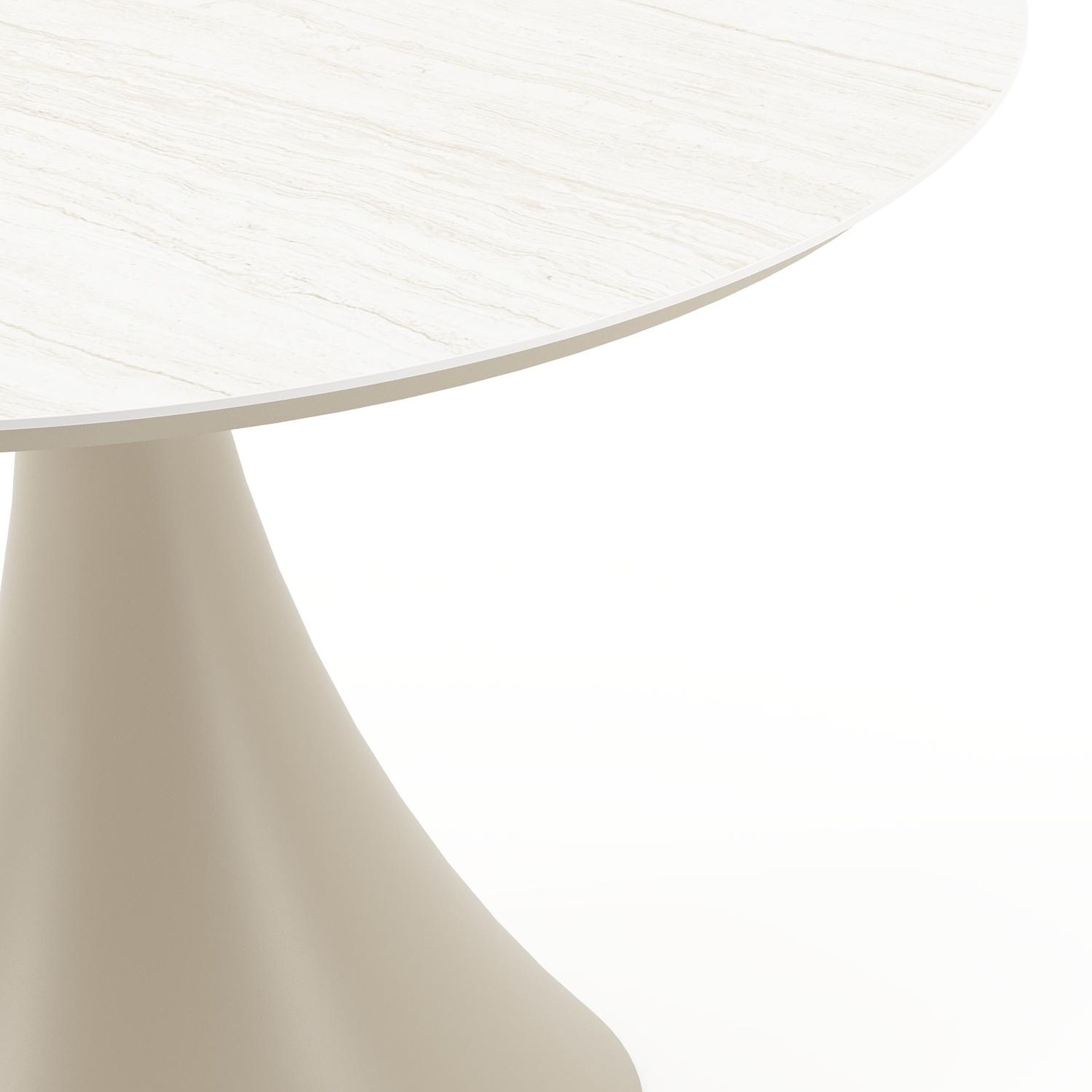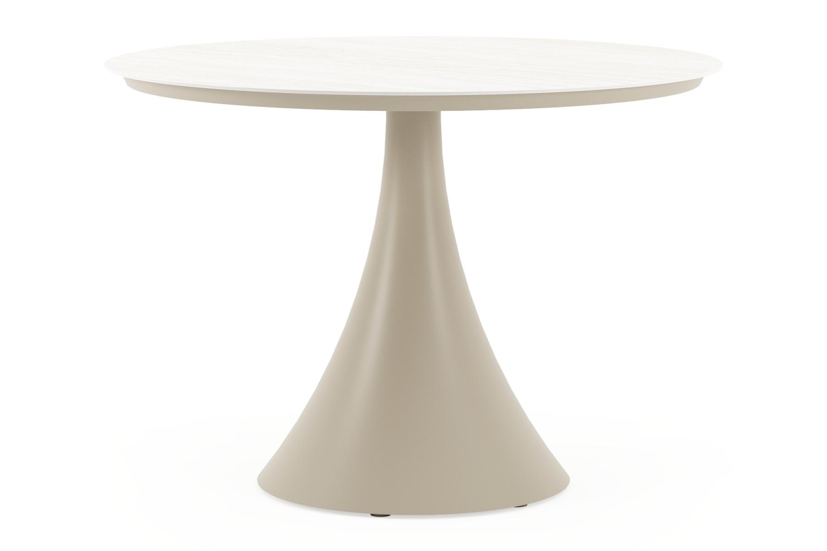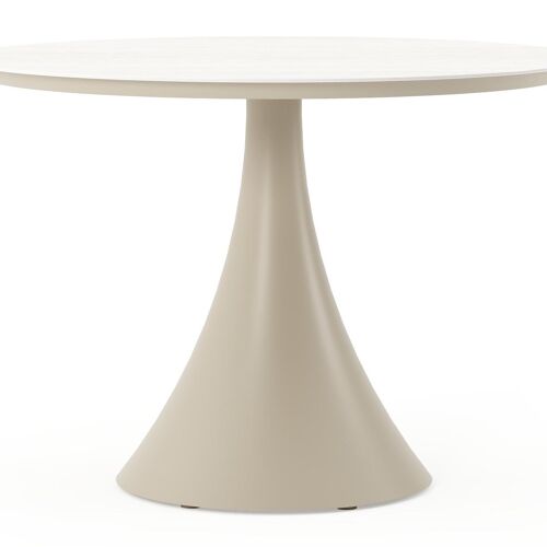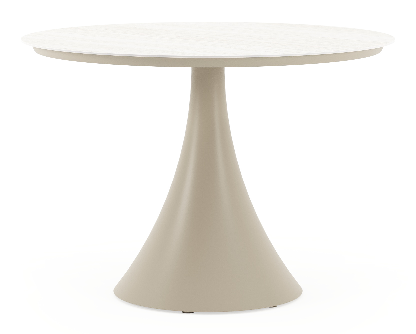 De Fano collectie onderscheidt zich door zijn trendy ronde tafel met de kenmerkende trompetpoot. Deze eigentijdse tafel biedt niet alleen een modieuze uitstraling, maar creëert ook een gezellige tafelbeleving, waarbij mensen tegenover elkaar kunnen zitten.