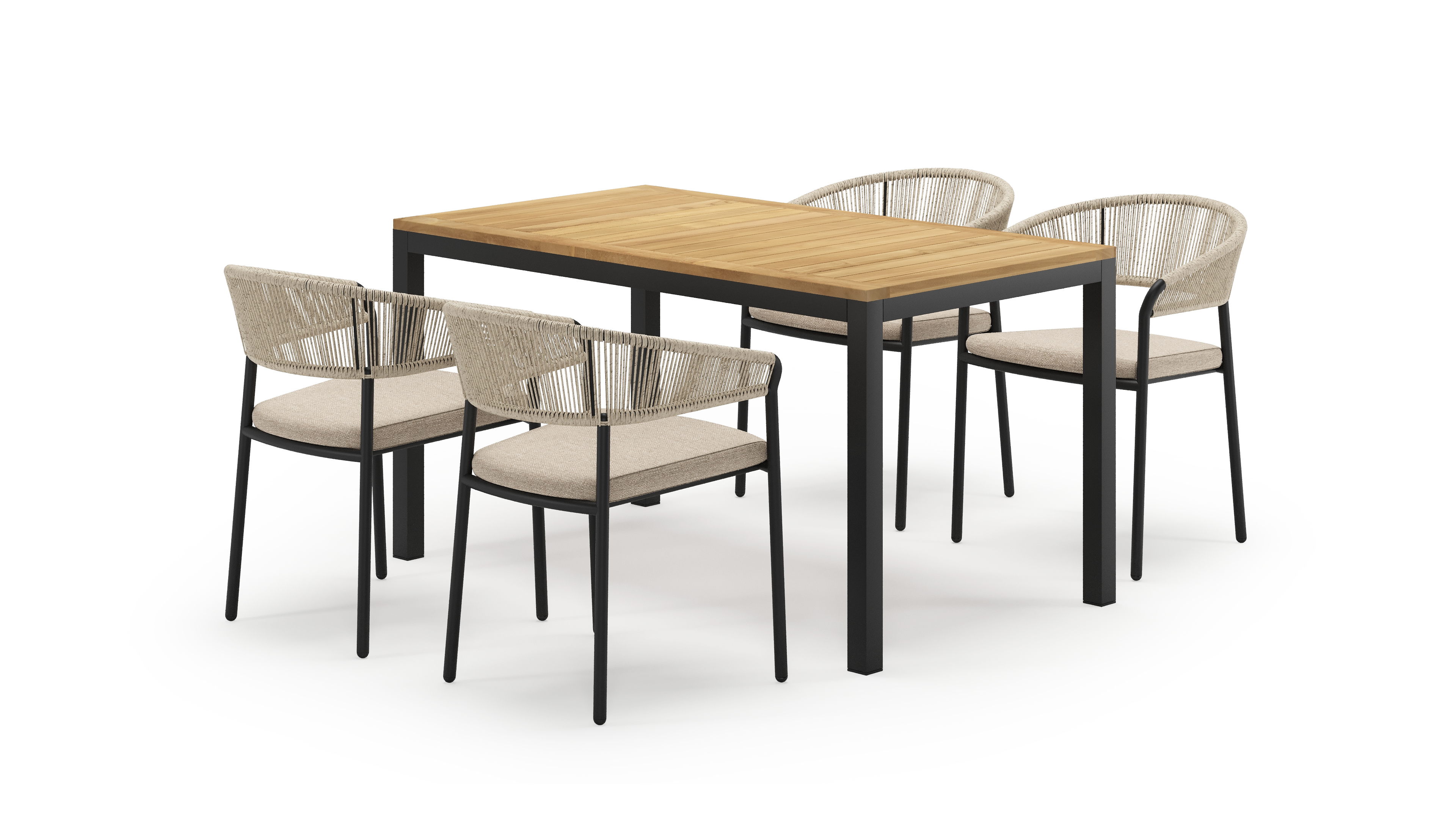 De Feltro tuinset past dankzij het stijlvolle, strakke design op elk terras en biedt heel wat keuzemogelijkheden wat betreft het tafelblad en formaat. Perfect voor kleine terrassen en balkons.
