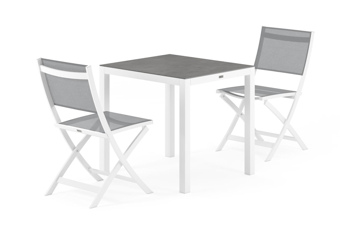Feltro tuinset in wit aluminium en volkeramiek grijs tafelblad met 2 Cerano tuinstoelen | Exterioo