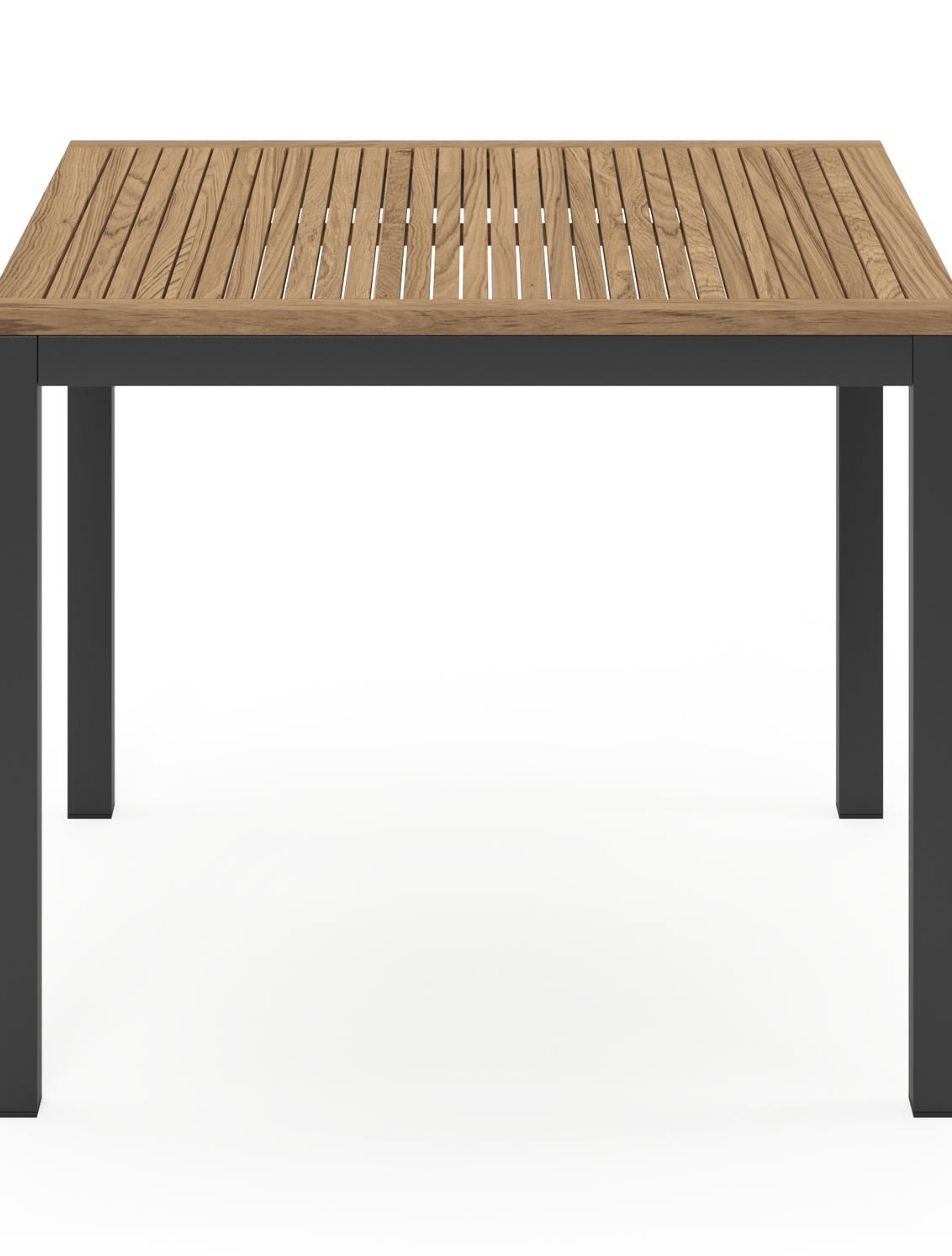 Een tafelblad uit teak staat gelijk aan bijzondere kwaliteit en natuurlijk design. Teak is een kwalitatieve houtsoort gekenmerkt door zijn hardheid. Aangezien hout leeft, kan de structuur of kleur licht anders zijn dan op het beeld weergegeven.