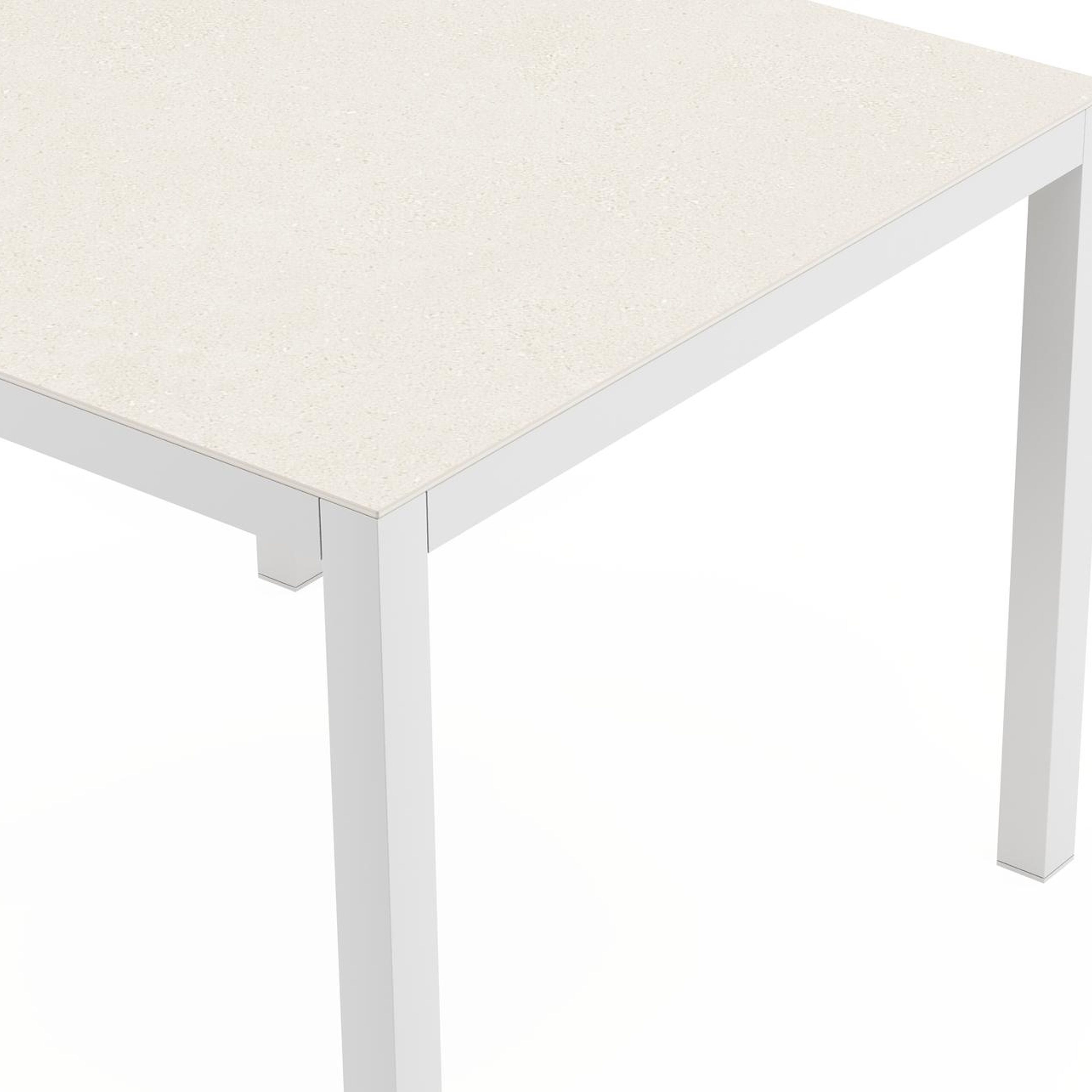 Het frame van de tafel is gemaakt uit roestvrij aluminium, een sterk, maar toch licht materiaal dat makkelijk verplaatsbaar is. Het oppervlak is glad afgewerkt waardoor het geen vuil aantrekt en onderhoudsvriendelijk is. De poedercoating zorgt voor de UV- en weerbestendigheid van je meubel.