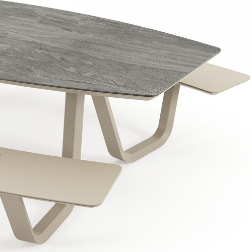 Forno picknicktafel bootvorm in beige aluminium en volkeramiek Aspen Grey - L 240 x B 181 x H 72 cm | Exterioo