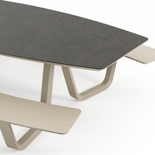 Forno picknicktafel bootvorm in beige aluminium en volkeramiek Calatorao - L 280 x B 192 x H 72 cm | Exterioo