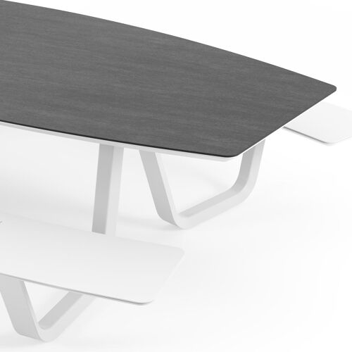 Forno picknicktafel bootvorm in wit aluminium en volkeramiek Basalt Black - L 280 x B 192 x H 72 cm | Exterioo