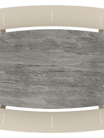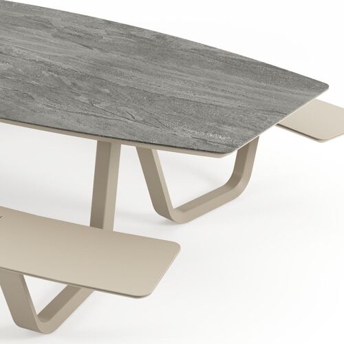 Forno picknicktafel bootvorm in beige aluminium en volkeramiek Aspen Grey - L 280 x B 192 x H 72 cm | Exterioo
