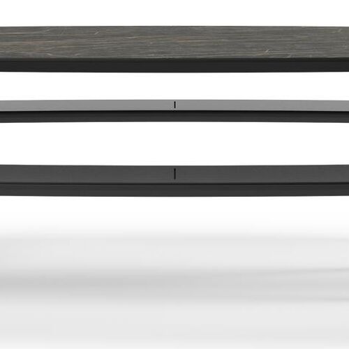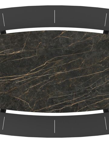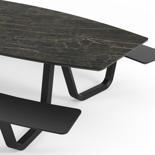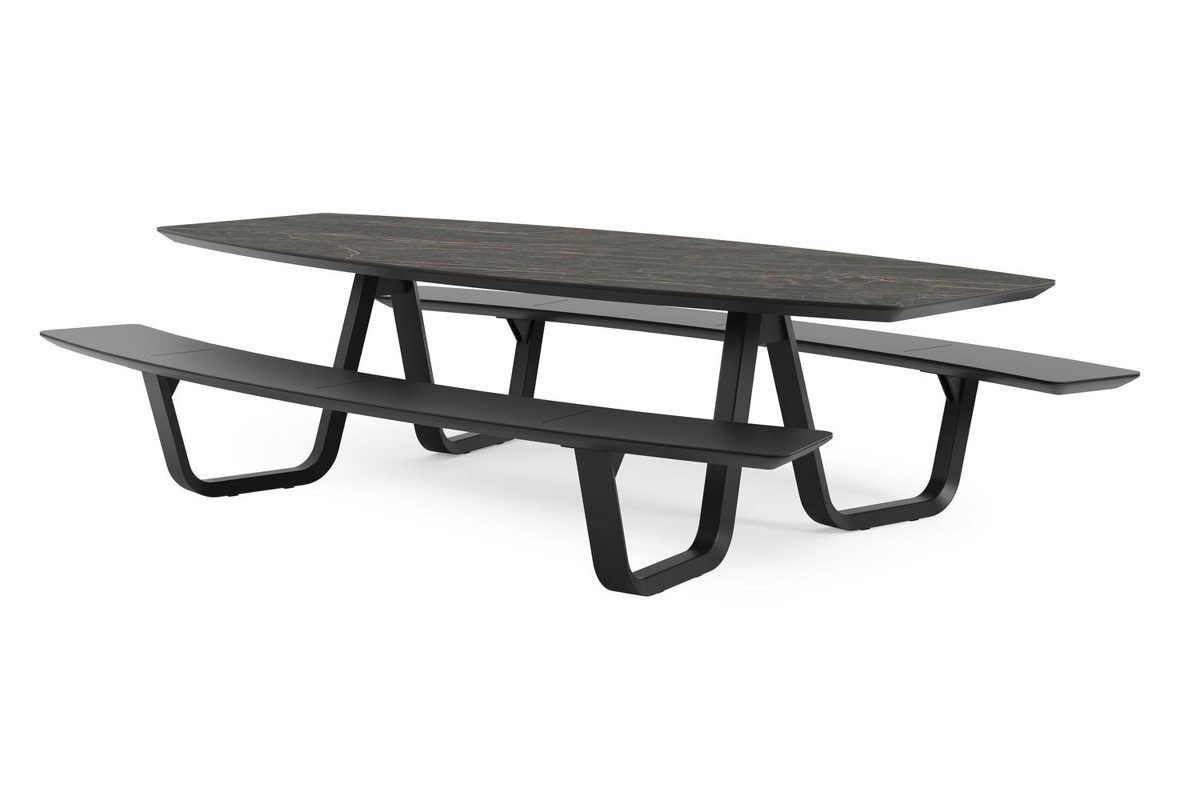 Forno picknicktafel bootvorm in zwart aluminium en volkeramiek black obsession tafelblad - L 280 x B 192 x 72 cm | Exterioo