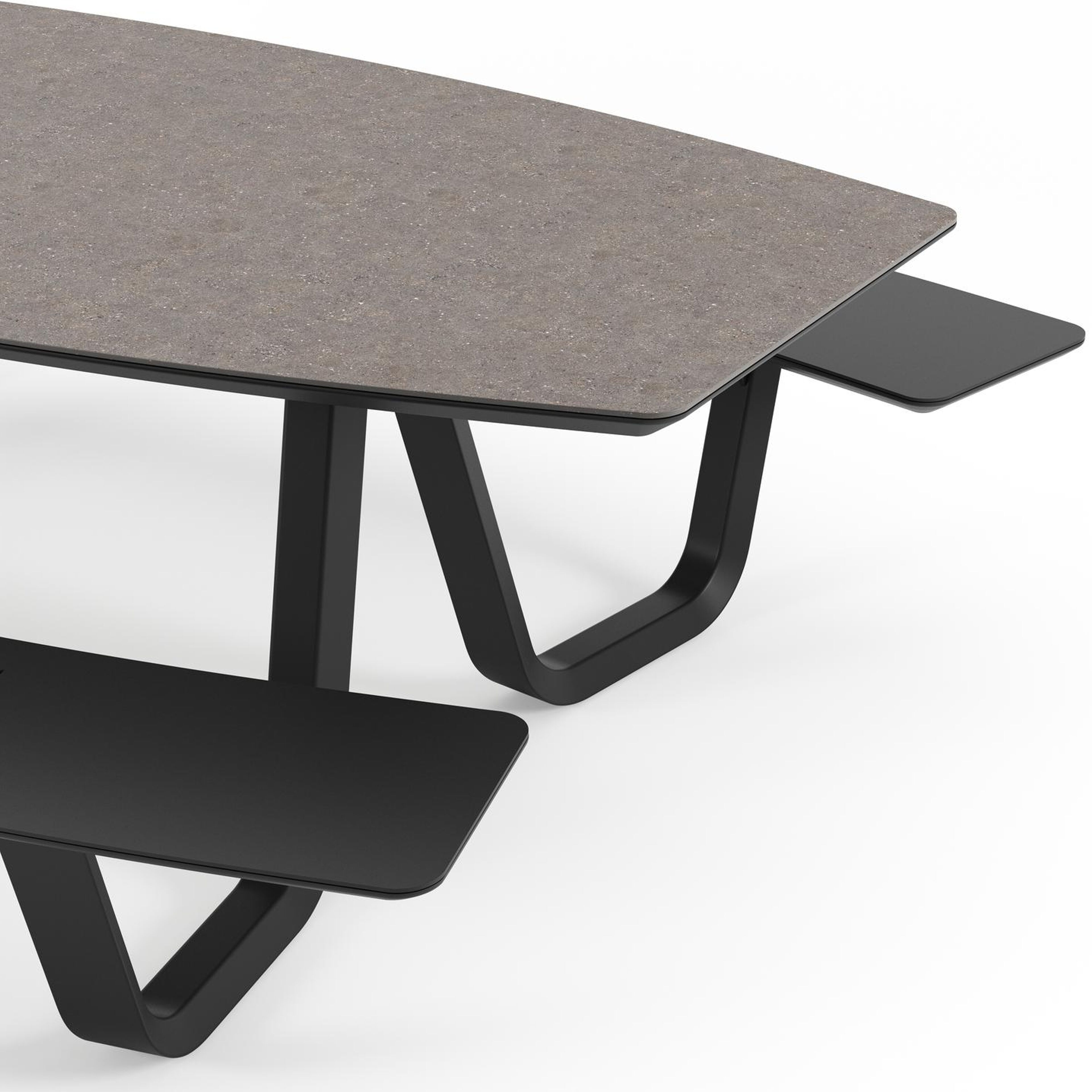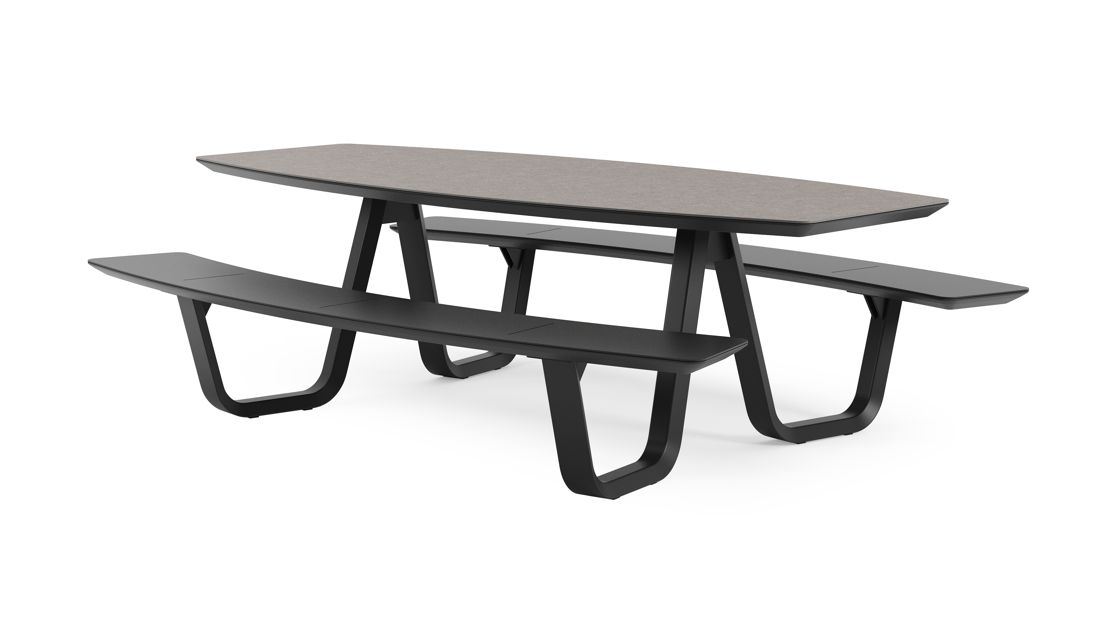 De Forno picknicktafel kenmerkt zich door zijn afgeronde vormen. Zowel het tafelblad als de banken hebben een bootvorm. De gebogen bank is makkelijk toegankelijk en voorziet plaats voor een groot gezelschap.