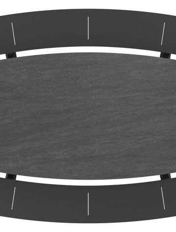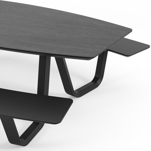 Forno picknicktafel bootvorm in zwart aluminium en volkeramiek basalt black tafelblad - L 240 x B 181 x H 72 cm | Exterioo